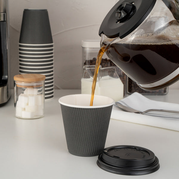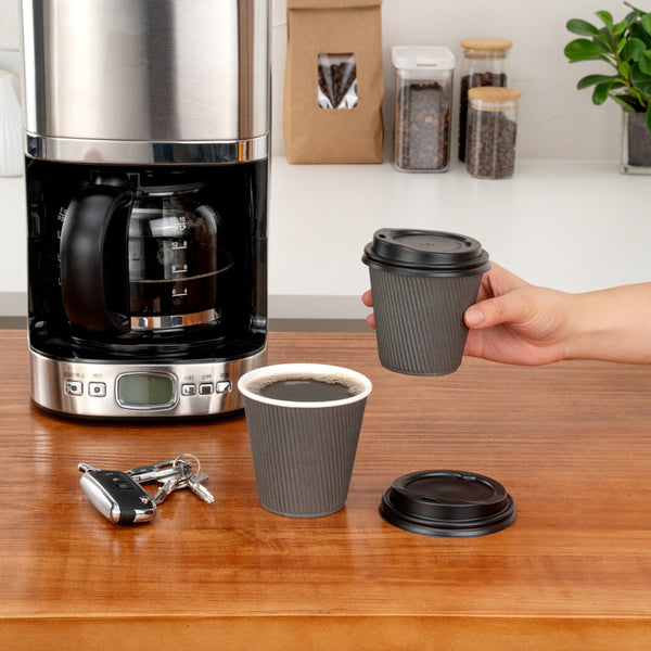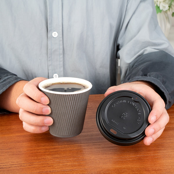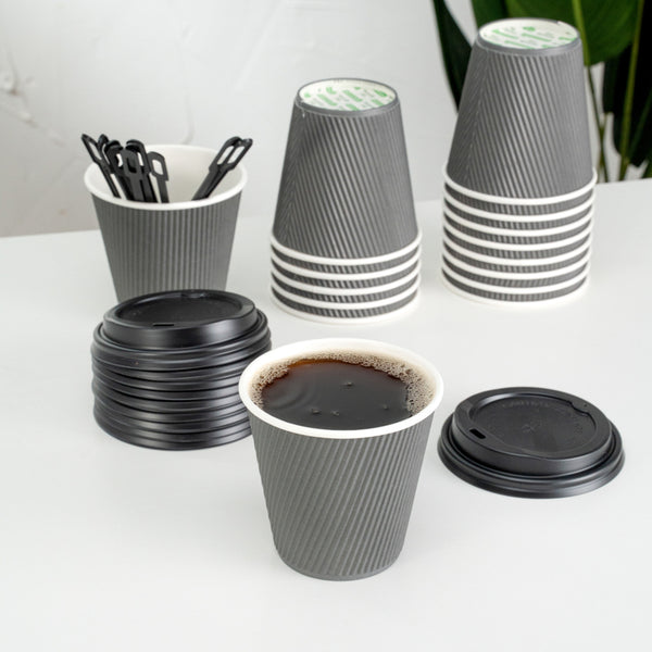 8 OZ GRAY PAPER RIPPLE WALL COFFEE CUP - WITH BLACK LID