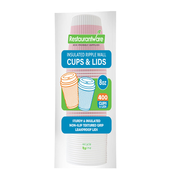 Enhance beverage service with ripple wall insulation for secure handling. The Restpresso 8 oz Light Pink Paper Ripple Wall Coffee Cups feature a ripple wall design that provides a secure grip for hot beverages, eliminating the need for additional sleeves. These pink ripple wall coffee cups are equipped with matching white lids, ensuring a spill-free experience during transport, making them perfect for takeout orders. Crafted from durable paper, these cups are suitable for both hot and cold beverages. With an 8-ounce capacity, they cater to standard coffee and tea portion sizes, making them ideal for coffee shops, cafés, or office settings. These recyclable disposable coffee cups with lids also support eco-friendly operations, reinforcing your commitment to sustainability. Each cup measures 3.6 inches in diameter by 4.1 inches in height, offering a snug fit with the included white lids for added security against spills. Sold in a 400 count box.