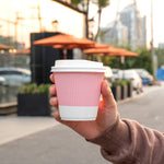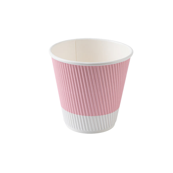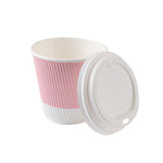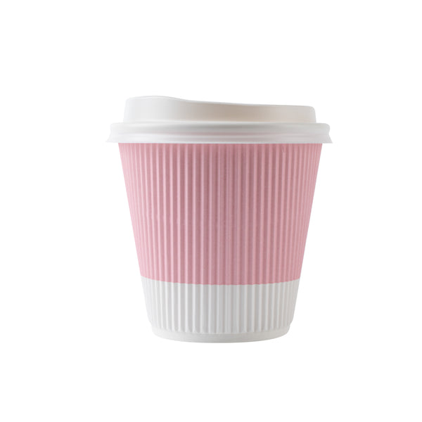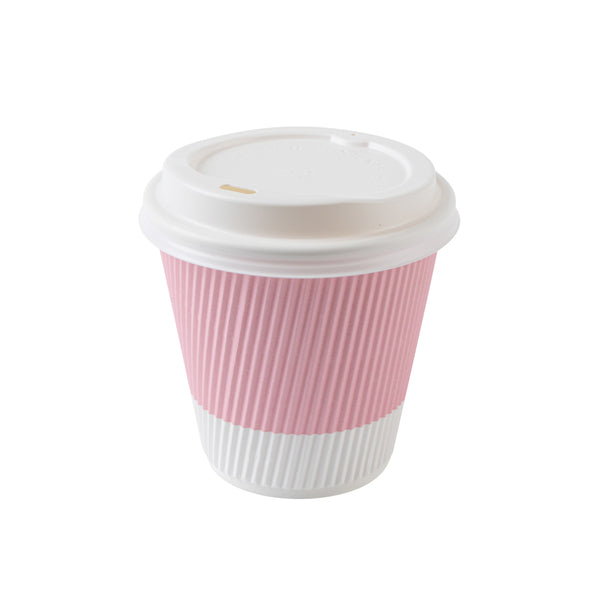 8 OZ LIGHT PINK PAPER RIPPLE WALL COFFEE CUP - WITH WHITE LID