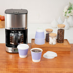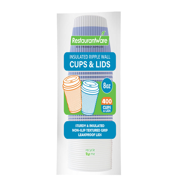 Enhance your beverage service with stylish, spill-resistant solutions. Restpresso 8 oz Light Purple Paper Ripple Wall Coffee Cups feature a ripple wall design that insulates drinks to maintain optimal temperatures, ensuring each sip of coffee or tea is just right while keeping hands comfortably cool. These disposable coffee cups come with matching white lids for a secure fit, preventing spills during transport and offering baristas an efficient way to serve drinks with confidence. As insulated paper cups, they are cold and hot food friendly, accommodating diverse menu items with ease and making them ideal for cafés and catering services. Crafted from durable paper, these purple coffee cups with lids add a unique visual appeal to your beverage presentation, enhancing customer experience. Their dimensions of 3.6 inches in diameter and 4.1 inches in height make them a convenient choice for coffee shops seeking reliable and stylish beverage containers. Sold in a 400 count box.