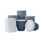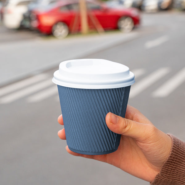8 OZ MIDNIGHT BLUE PAPER RIPPLE WALL COFFEE CUP - WITH WHITE LID