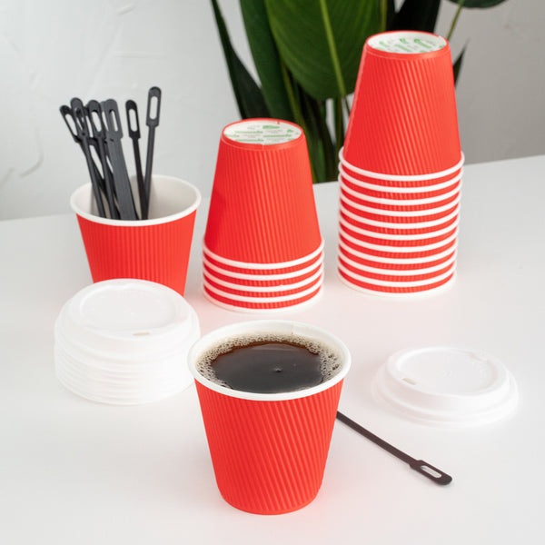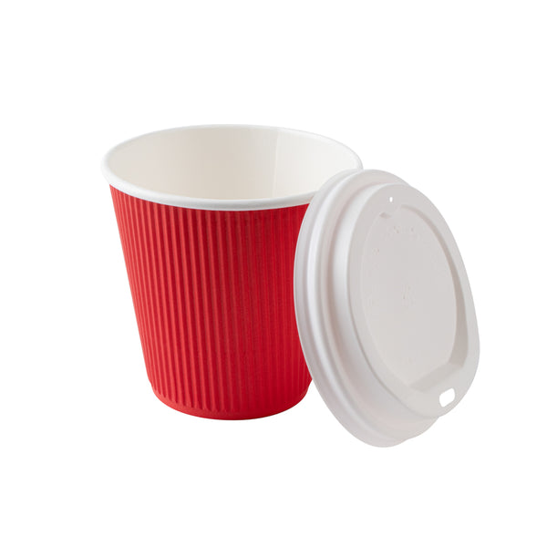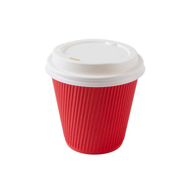 8 OZ RED PAPER RIPPLE WALL COFFEE CUP - WITH WHITE LID
