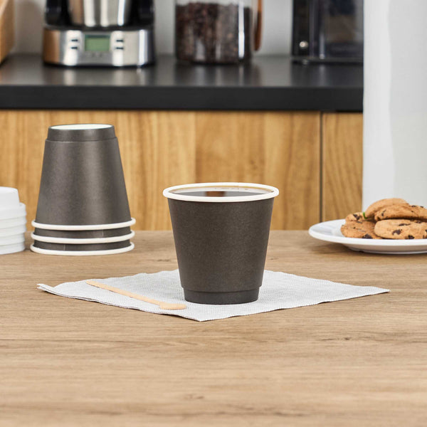 8 OZ ROUND BLACK PAPER COFFEE CUP - DOUBLE WALL