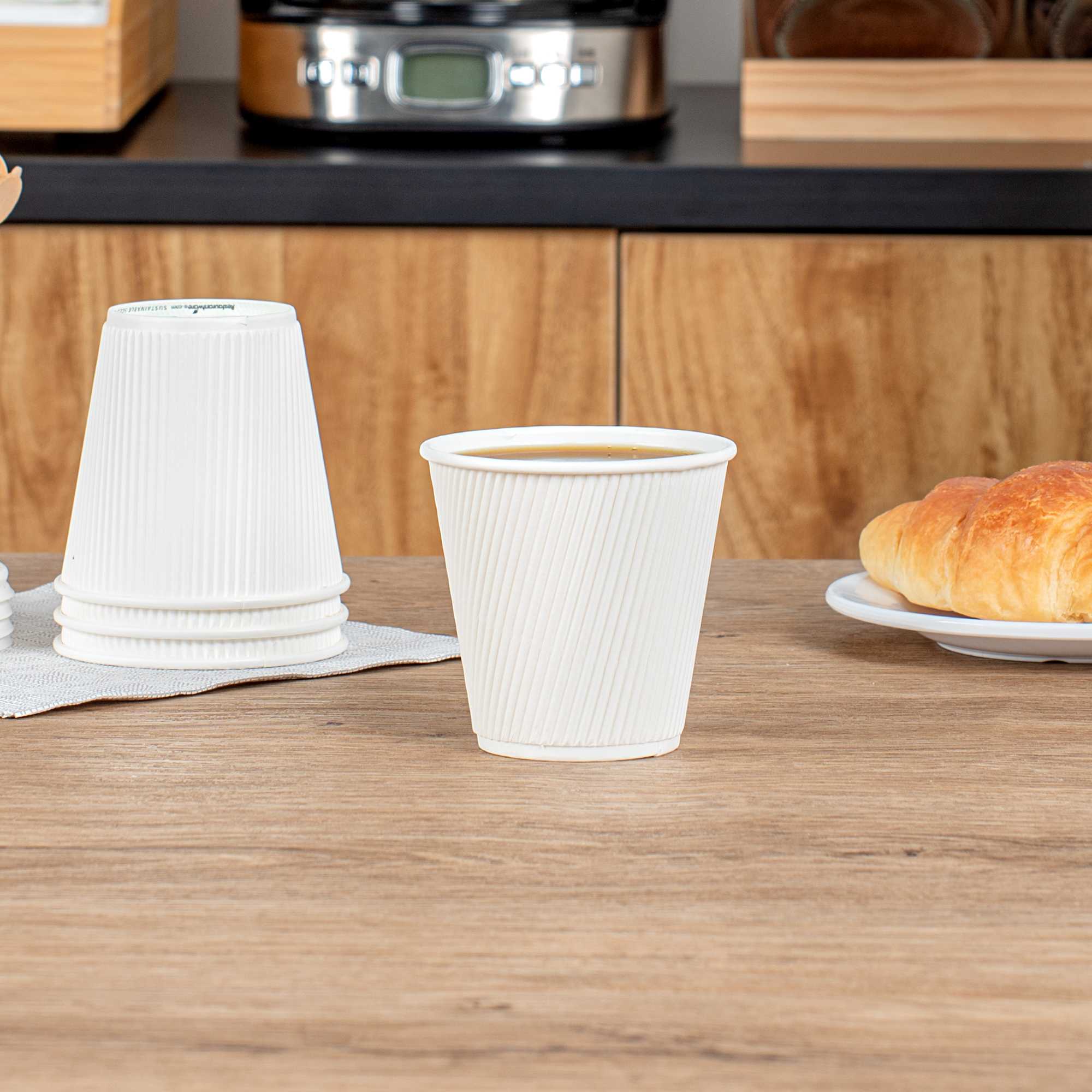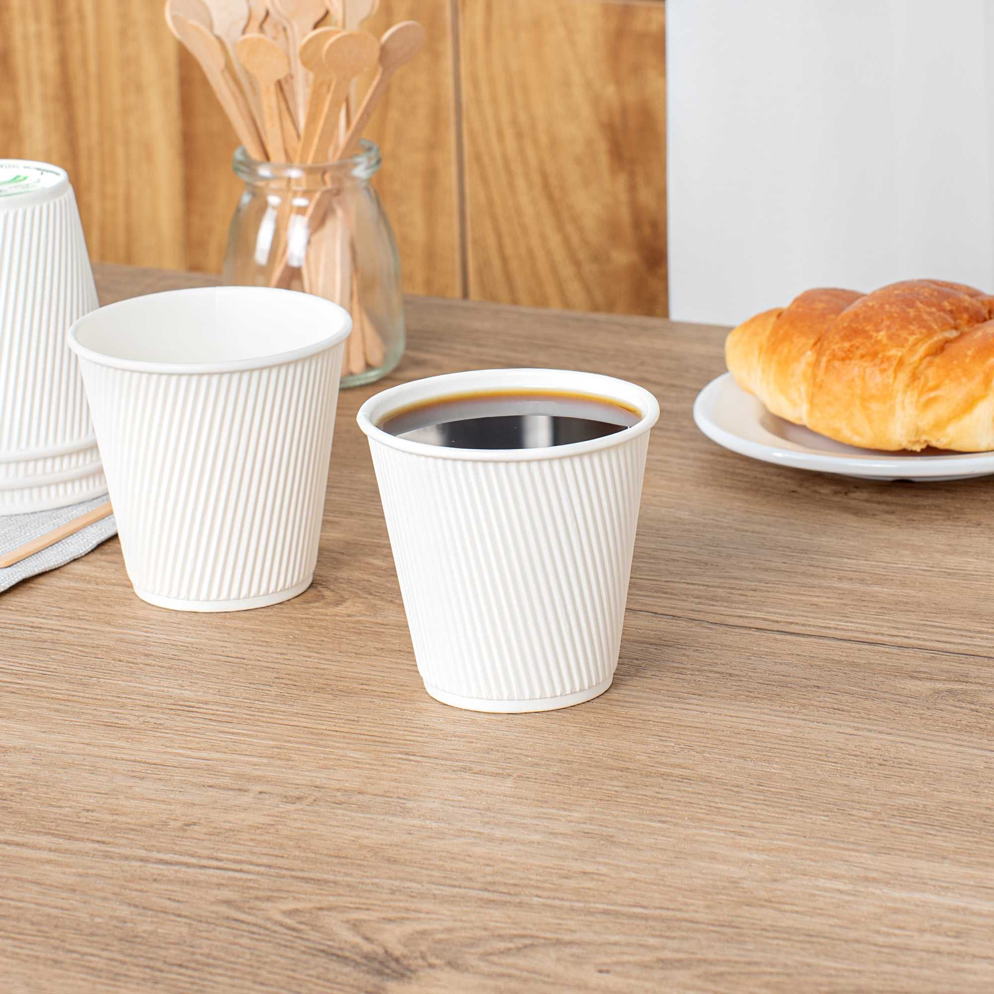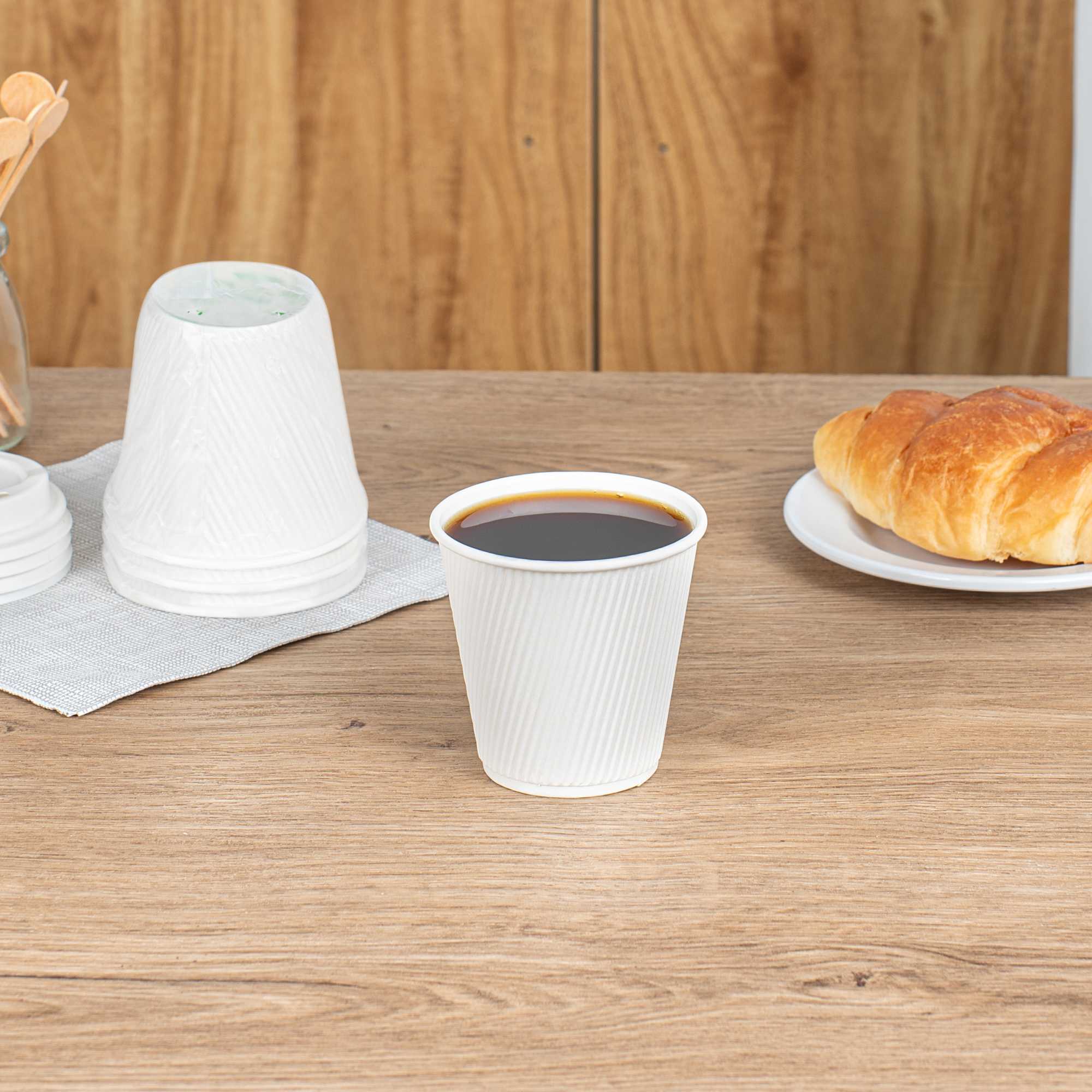 8 OZ WHITE PAPER HOT CUP - INDIVIDUALLY WRAPPED, RIPPLE WALL