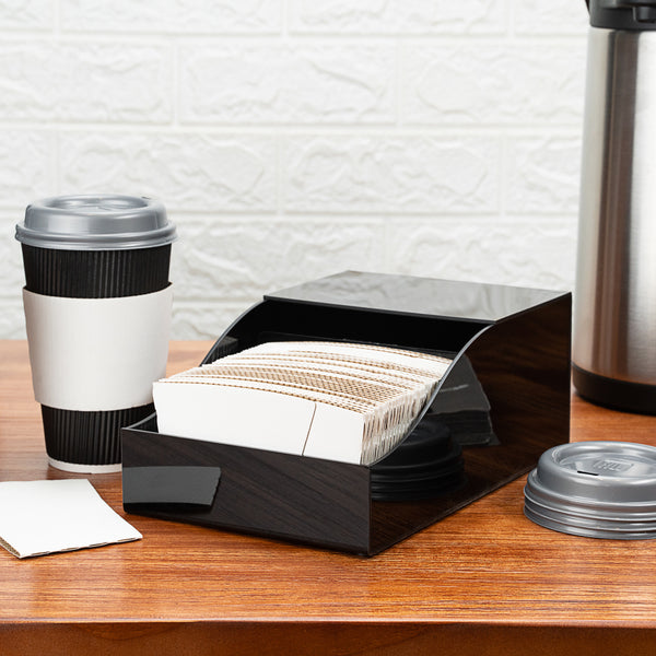 The stylish and elegant design of these coffee sleeve organizers enhances the overall aesthetic of your coffee bars, providing a modern and sleek look. The black finish effortlessly matches any type of decor.