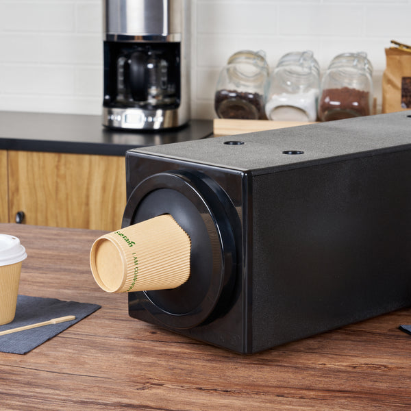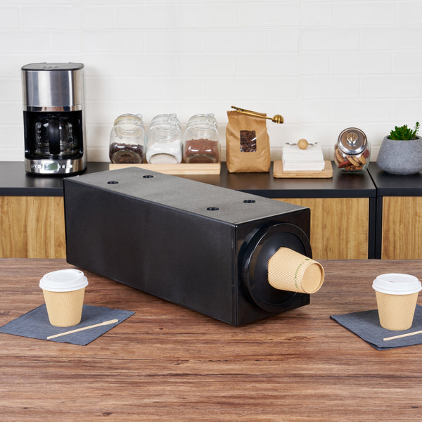 Elevate your beverage station with our Restpresso Black Countertop Cup Dispenser Cabinet, designed for efficiency and style. This cup dispenser comes with 5 interchangeable gaskets to fit cups ranging from 8-ounce to 44-ounce, accommodating rim diameters from 2.75 inches to 4.75 inches. Featuring a stackable design, this paper cup dispenser can be paired with another unit for a streamlined and organized storage solution. With its 1-slot design, this coffee cup dispenser ensures easy access to a single cup, promoting quick and efficient service. To reduce waste and boost efficiency, this commercial cup dispenser releases one cup at a time. Equipped with non-skid feet, this disposable cup dispenser remains securely in place on any countertop. The sleek black finish of this foam cup dispenser cabinet provides a professional look that complements any setting. Measuring 24.41 inches in length by 8.07 inches in width by 8.07 inches in height, this black cup dispenser is both compact and spacious. Sold in a 1 count box.