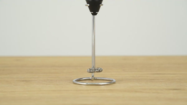 BLACK ELECTRIC HANDHELD MILK FROTHER - BATTERY-OPERATED, WITH STAND