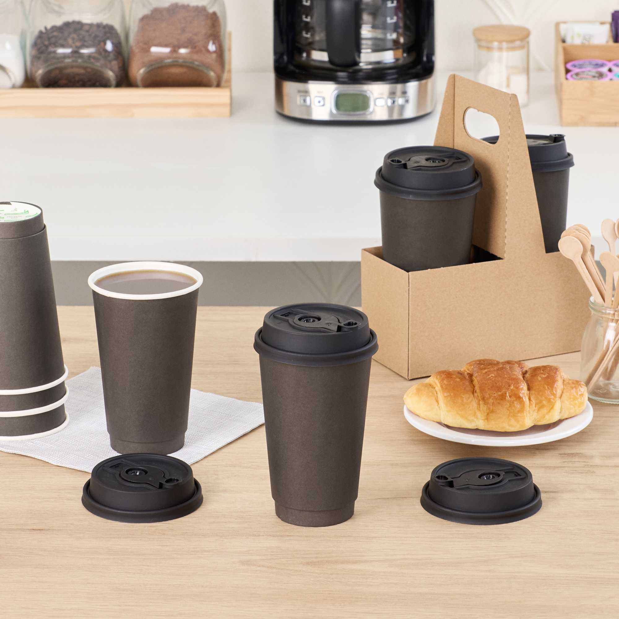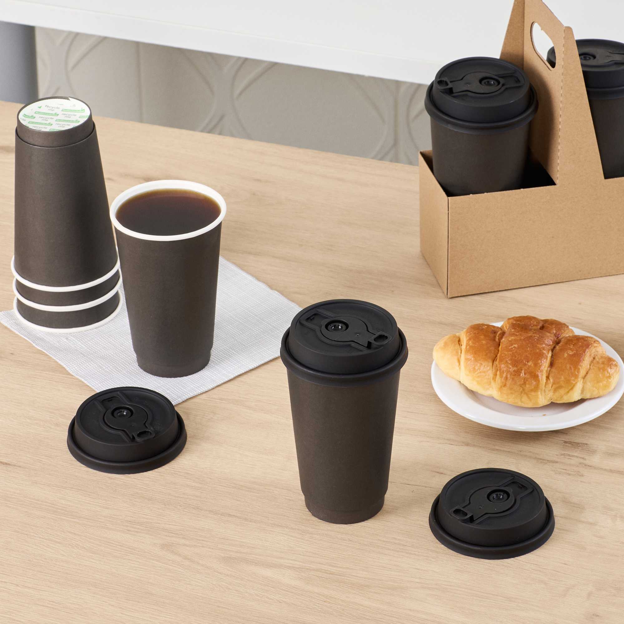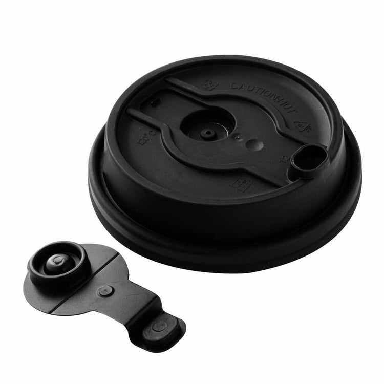 BLACK PLASTIC 2-IN-1 COFFEE CUP LID - WITH PLUG, FITS 8, 12, 16, 20 OZ