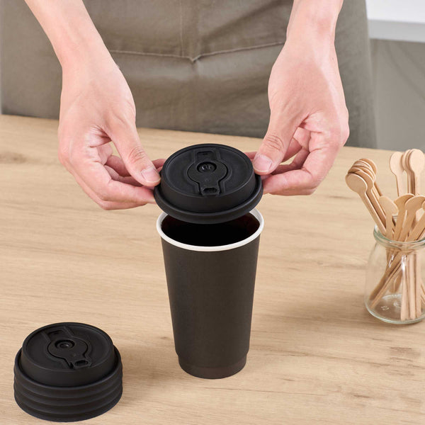 BLACK PLASTIC 2-IN-1 COFFEE CUP LID - WITH PLUG, FITS 8, 12, 16, 20 OZ