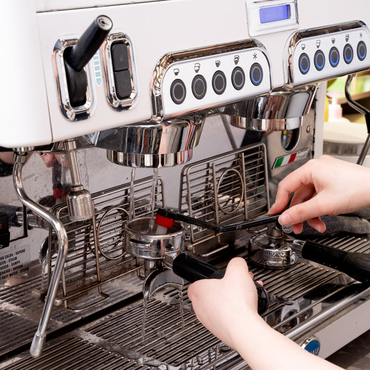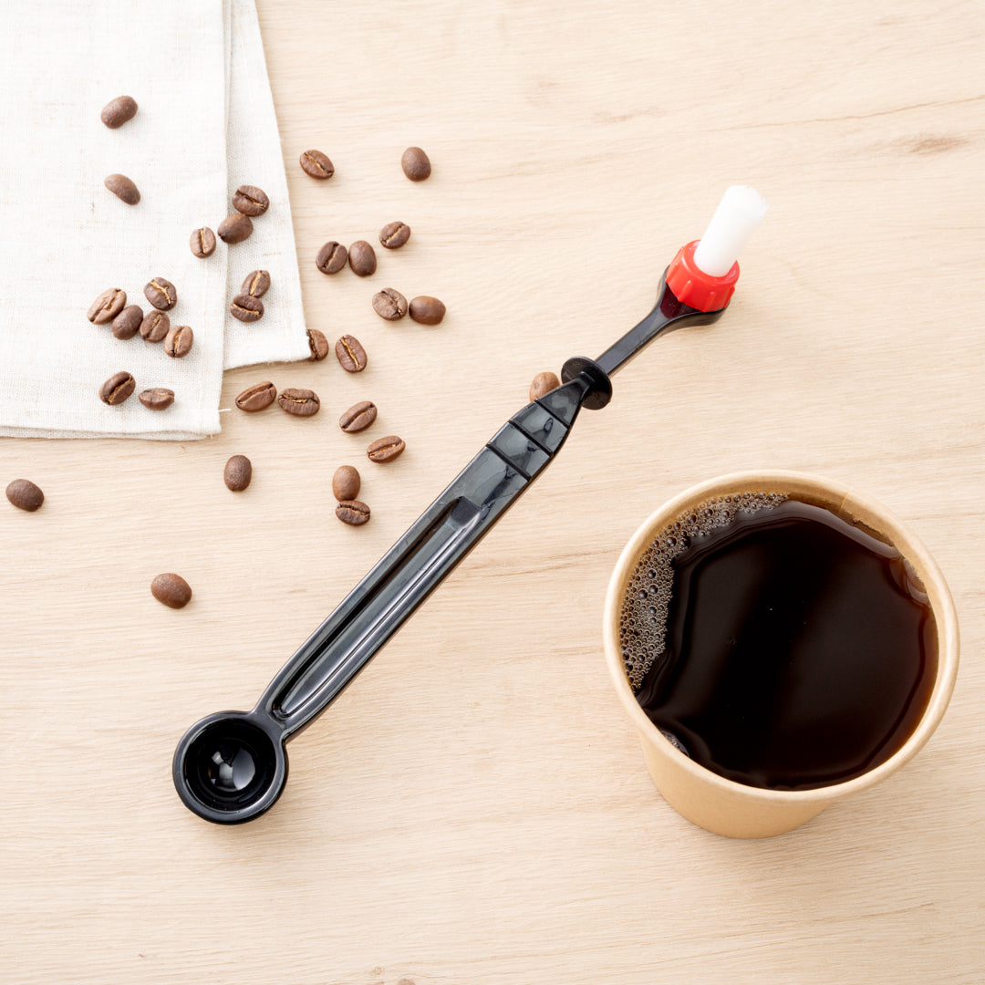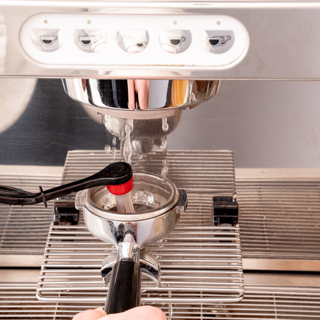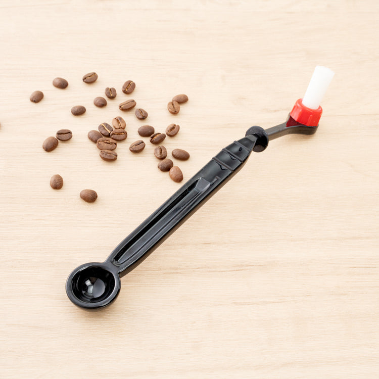 BLACK PLASTIC CLEANING BRUSH AND SPOON - FOR ESPRESSO MACHINES
