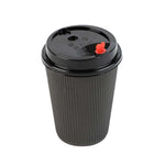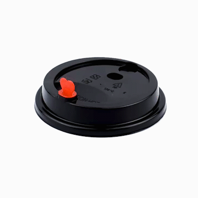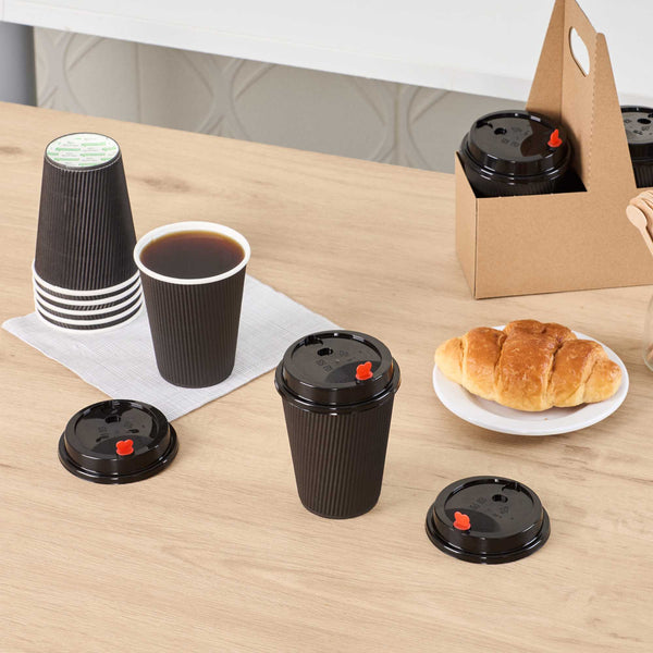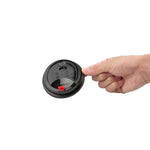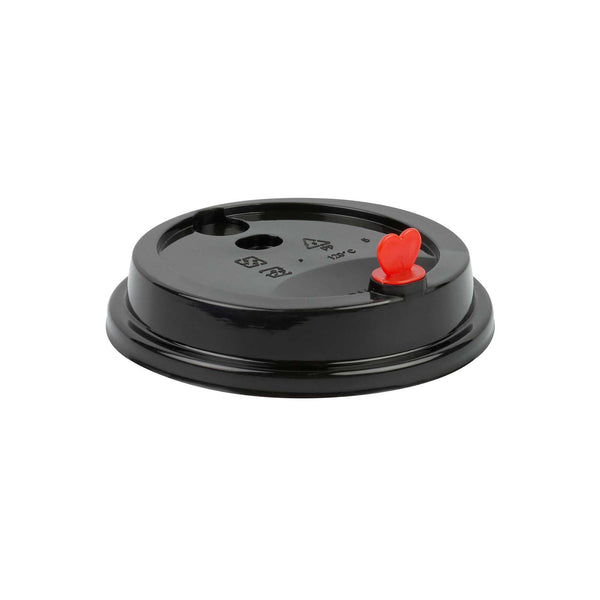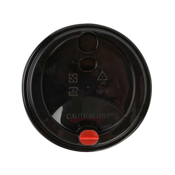 BLACK PLASTIC COFFEE CUP LID - FITS 8, 12, 16 AND 20 OZ, WITH RED PLUG