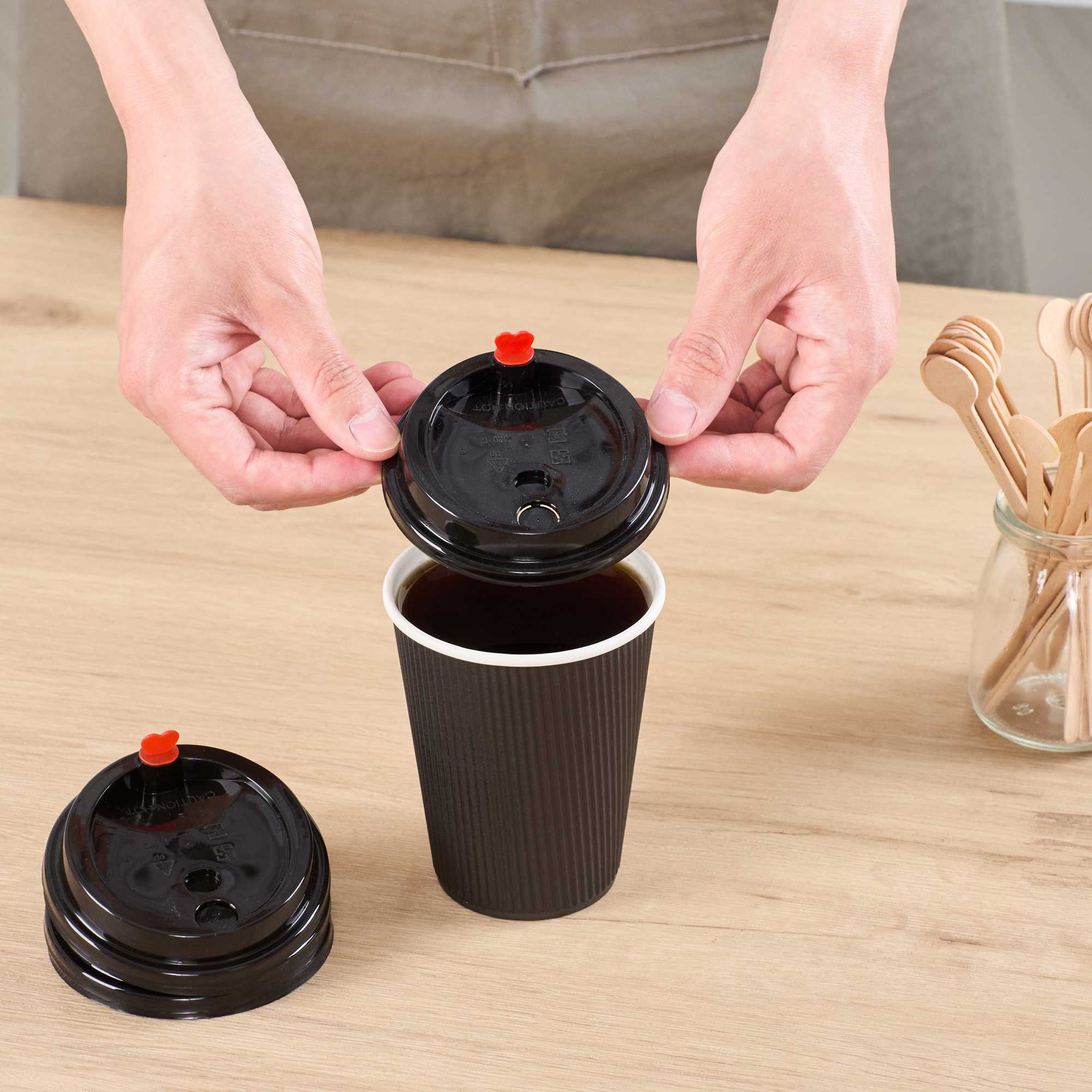Premium plastic lids snugly fit on coffee cups without splitting and won’t break while in use. No more coffee stains or spills on your clothes!