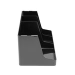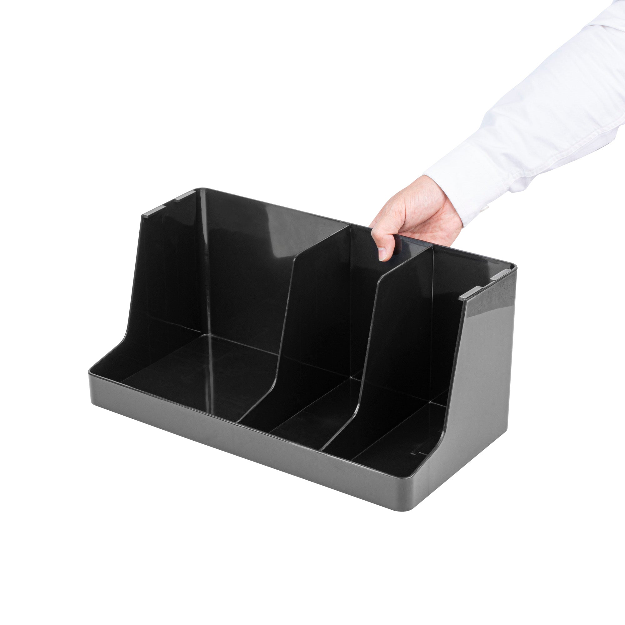 Streamline your coffee station with our Restpresso Black Plastic Coffee Cup / Lid / Napkin Organizer. This versatile coffee organizer features 3 compartments, perfect for keeping napkins, lids, and coffee cups neatly accessible. Designed with an open layout, this countertop organizer allows staff to easily monitor supply levels at a glance and provides easy access to the bottom of the stacks. Crafted from premium plastic, this coffee caddy ensures long-lasting use and reliable storage for all your beverage supplies. With its compact design, this plastic organizer fits seamlessly into any space, maximizing efficiency without taking up too much room. The sleek black finish of this organizer adds a touch of sophistication while complementing any coffee station setup. Measuring 16.14 inches in length by 8.27 inches in width by 7.09 inches in height, this black organizer is perfectly sized for optimal convenience. Sold in a 1 count box.