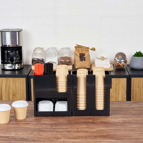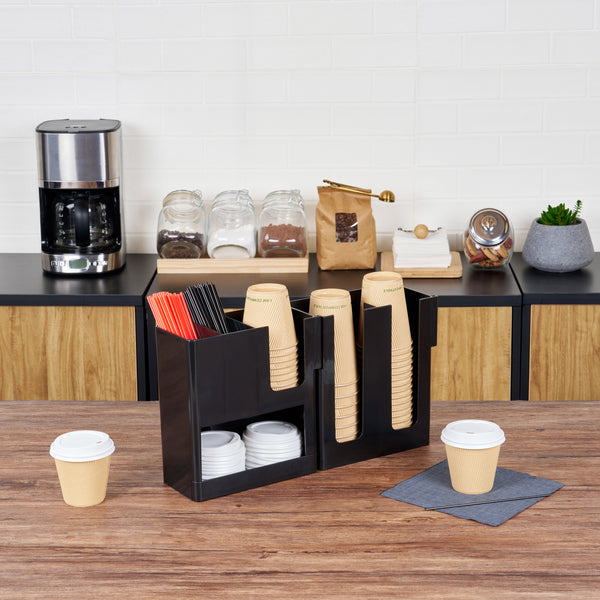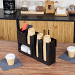 BLACK PLASTIC COFFEE CUP / LID / NAPKIN ORGANIZER - 6 SECTION