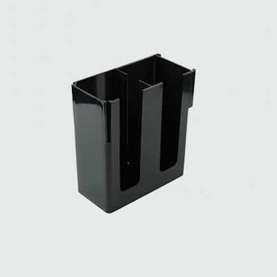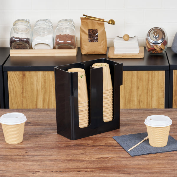 Streamline your coffee station with our Restpresso Black Plastic Coffee Cup / Lid Organizer, designed to elevate organization and efficiency. This coffee organizer features 2 compartments, expertly crafted to keep lids and coffee cups neatly arranged and easily accessible for staff and customers alike. With its open design, this countertop organizer allows staff to monitor supply levels effortlessly, ensuring your beverage station never runs out during peak hours. Made from premium plastic, this durable coffee caddy provides reliable, long-lasting storage for all your beverage supplies. Designed to maximize efficiency, this compact plastic organizer fits seamlessly into any space without taking up too much room, making it a perfect addition to busy foodservice environments. The sophisticated black finish of this plastic coffee organizer adds a touch of elegance, effortlessly complementing any coffee station setup. Measuring 9.06 inches in length by 4.33 inches in width by 9.45 inches in height, this organizer is perfectly sized for optimal use in any setting. Sold in a 1 count box.