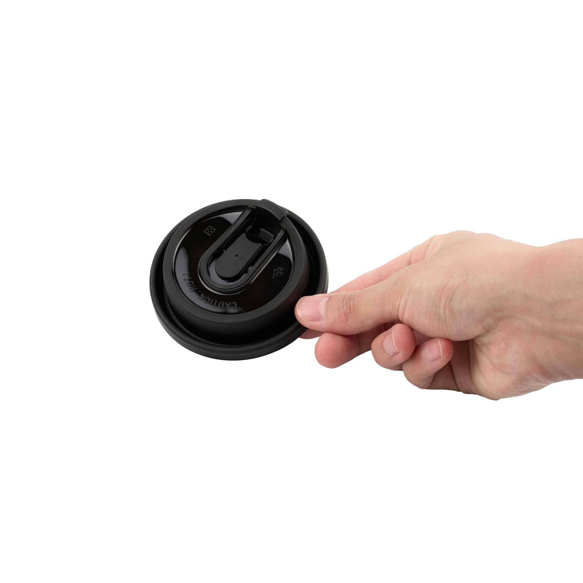 Ensure customer satisfaction with secure transport using our Restpresso Black Plastic Coffee Cup Lid. This spill-proof lid, crafted from durable black plastic, features a detachable plug design that keeps beverages hot and prevents unwanted spills, making it ideal for busy coffee shops and cafés. Its universal cup lid compatibility fits 8, 12, 16, and 20-ounce cups, streamlining inventory management and simplifying operations. The robust plastic construction ensures a leak-resistant experience that accommodates both hot and cold beverages, enhancing versatility in your drink service. Additionally, the straw or sippy feature on this lid provides flexibility for varied drink types, catering to diverse customer preferences. Measuring 3.54 inches in diameter and 1.25 inches in height, these lids are stackable, saving valuable storage space in high-volume foodservice settings. Sold in a 25 count box.
