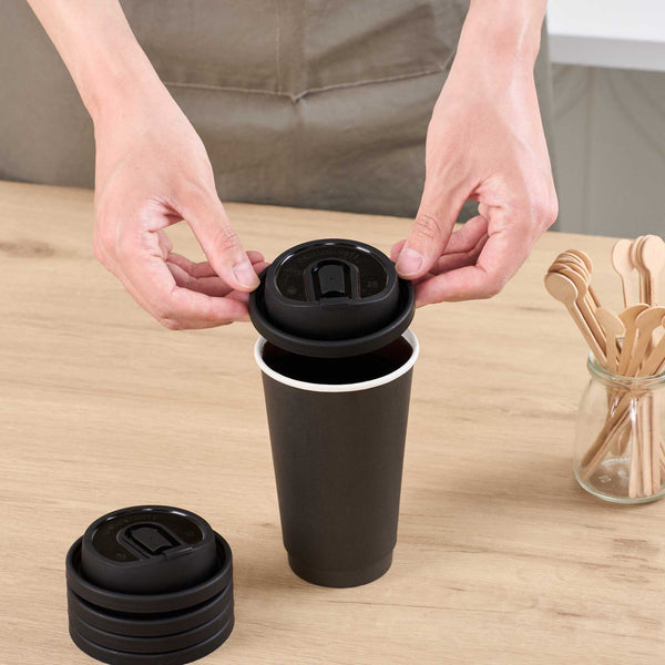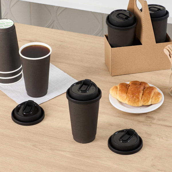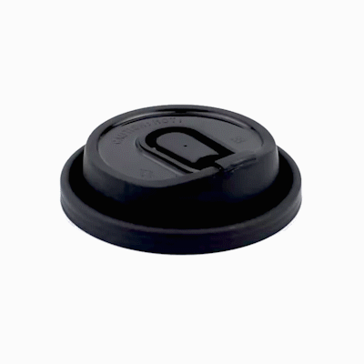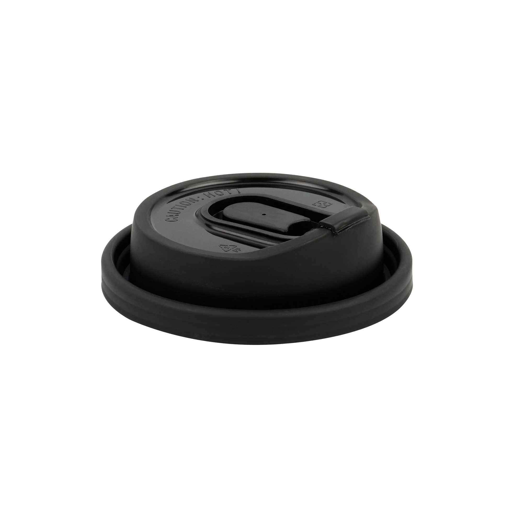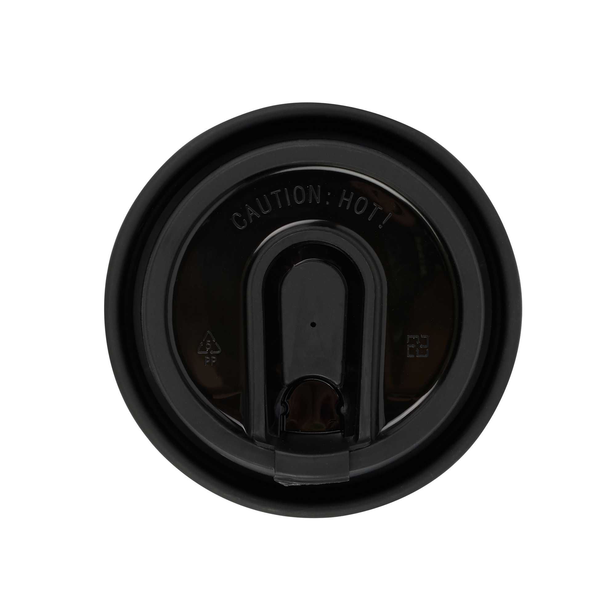 BLACK PLASTIC COFFEE CUP LID - WITH PLUG, FITS 8, 12, 16 AND 20 OZ