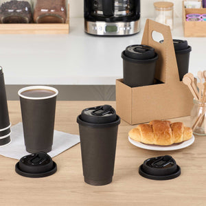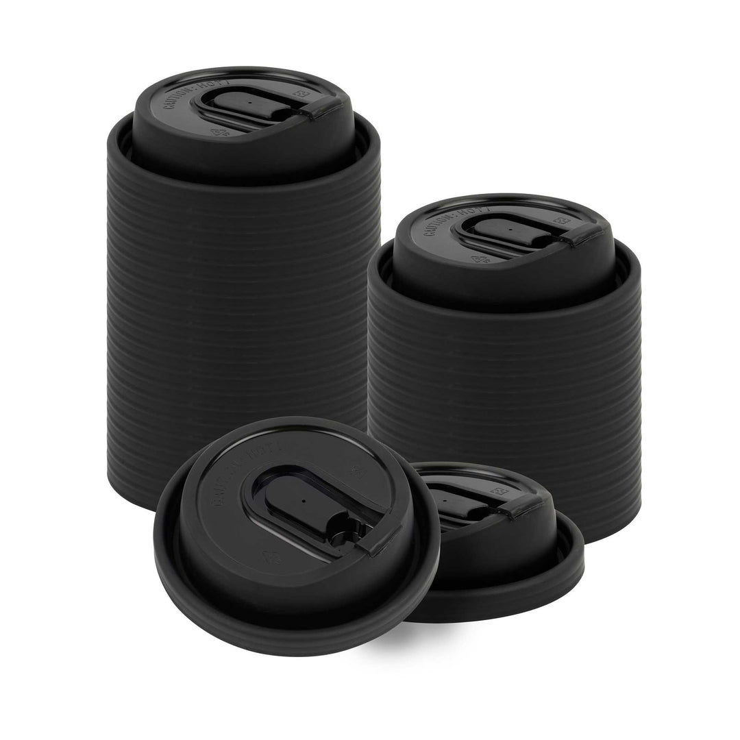 BLACK PLASTIC COFFEE CUP LID - WITH PLUG, FITS 8, 12, 16 AND 20 OZ