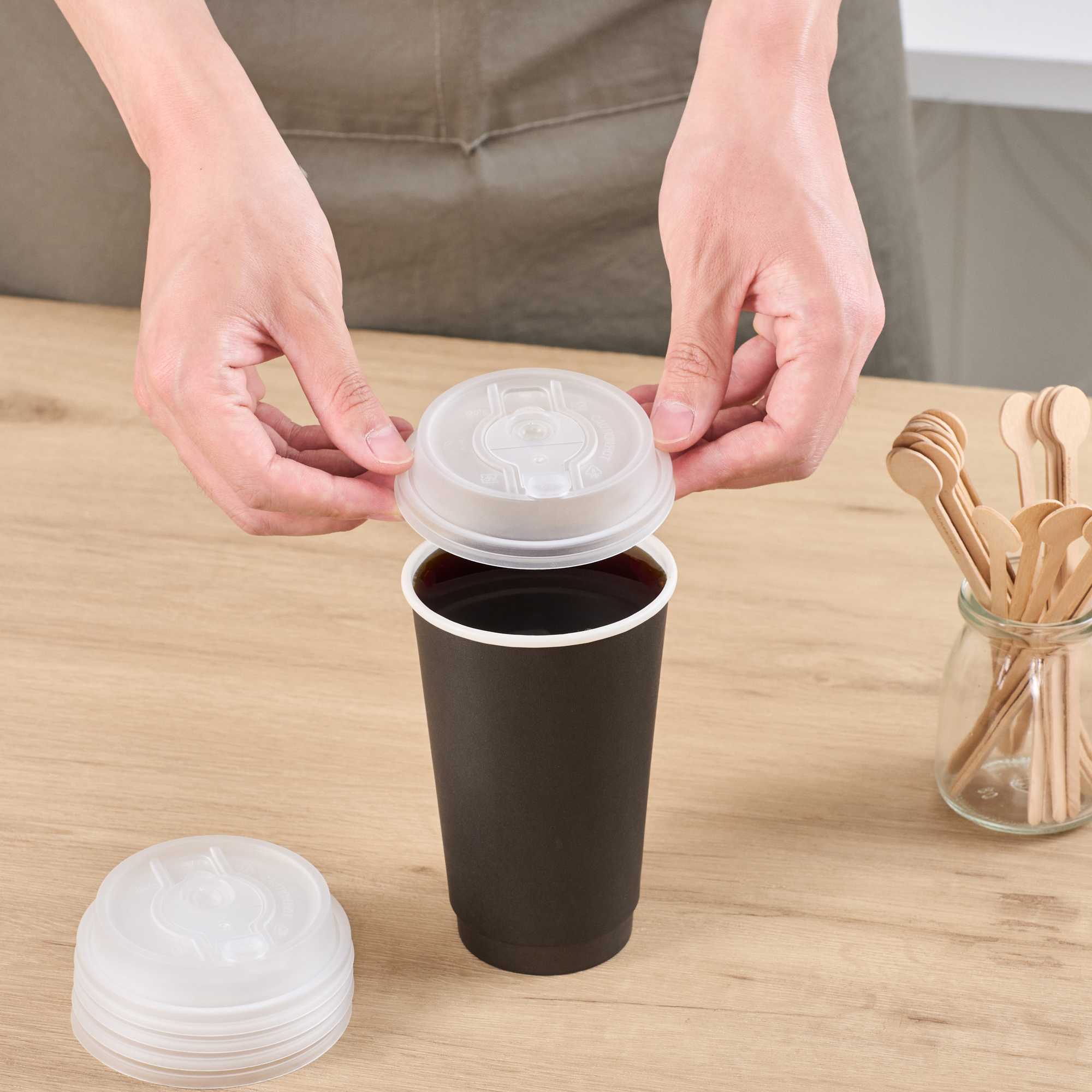 CLEAR PLASTIC 2-IN-1 COFFEE CUP LID - WITH PLUG, FITS 8, 12, 16, 20 OZ