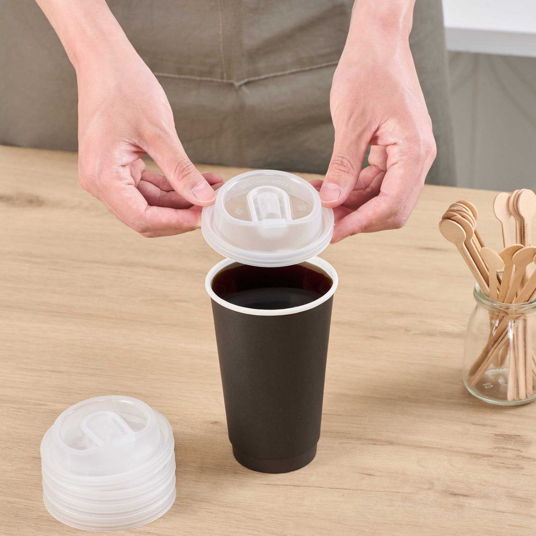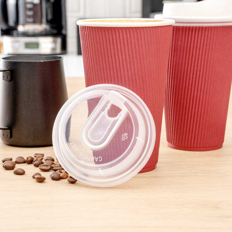 Ensure seamless beverage service with Restpresso Clear Plastic Coffee Cup Lids. These versatile plastic coffee cup lids are designed to fit 8, 12, 16, and 20-ounce coffee cups, streamlining your inventory and simplifying operations. The detachable plug provides a leakproof transport solution, ensuring beverages remain secure, enhancing customer satisfaction during delivery. With a built-in sipping spout, these clear cup lids allow customers to enjoy drinks comfortably on the go, adding convenience to every sip. Made from durable PP plastic, these lids are suitable for both hot and cold beverages, offering versatility across your menu. The 3.54-inch diameter and stackable nature provide easy storage and accessibility. Perfect for coffee shops, cafes, and restaurants offering takeout services, these disposable lids for coffee cups ensure safe and spill-free transport. Sold in a 25 count box.