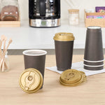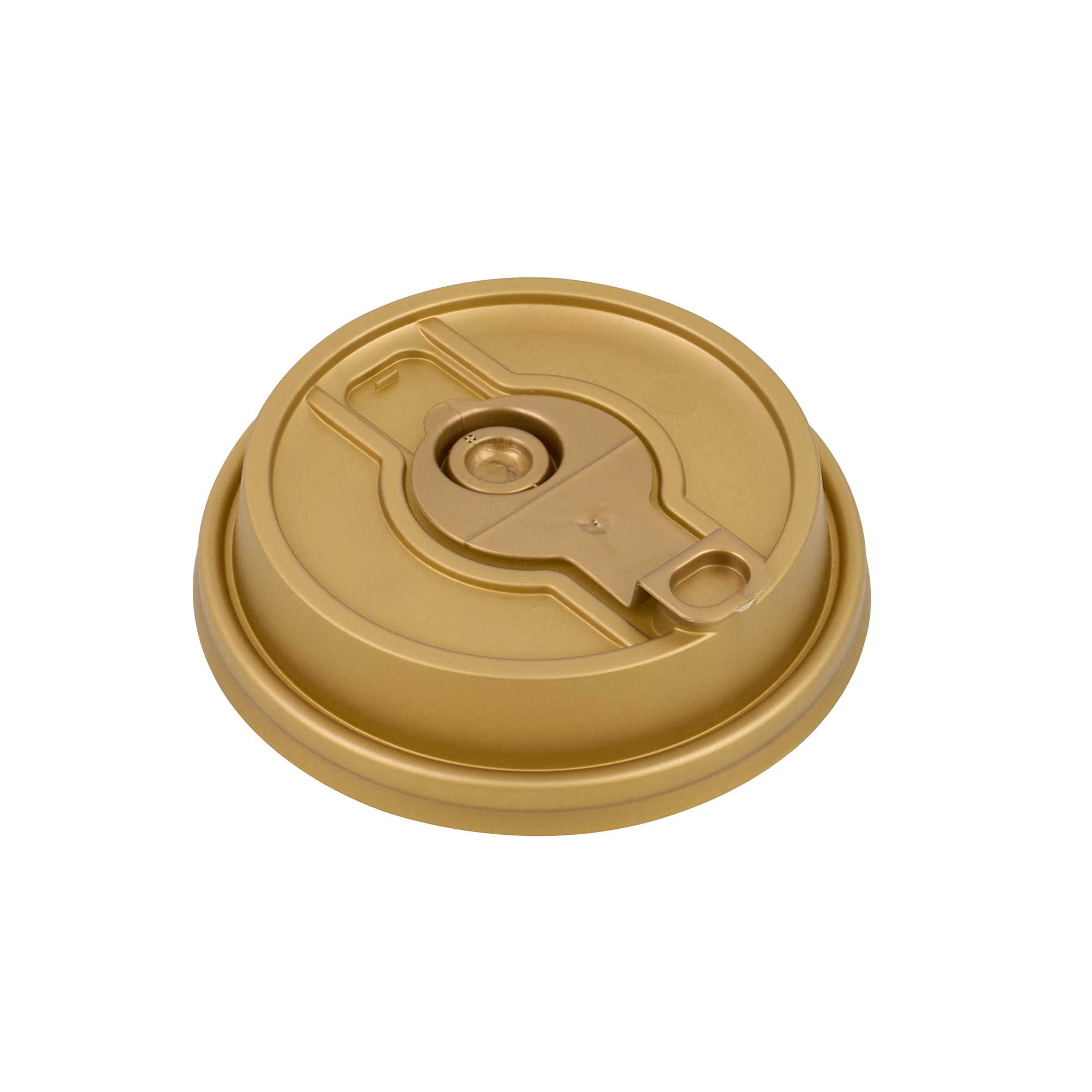 GOLD PLASTIC 2-IN-1 COFFEE CUP LID - WITH PLUG, FITS 8, 12, 16, 20 OZ