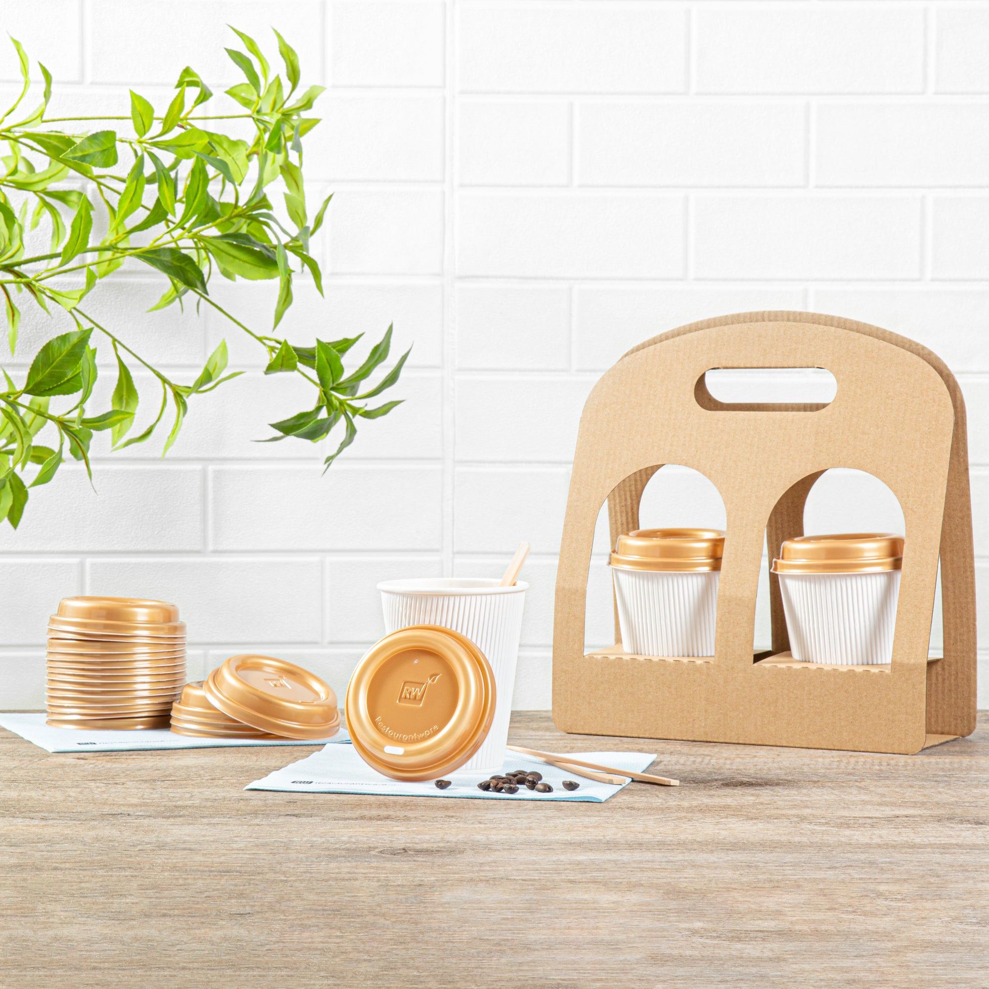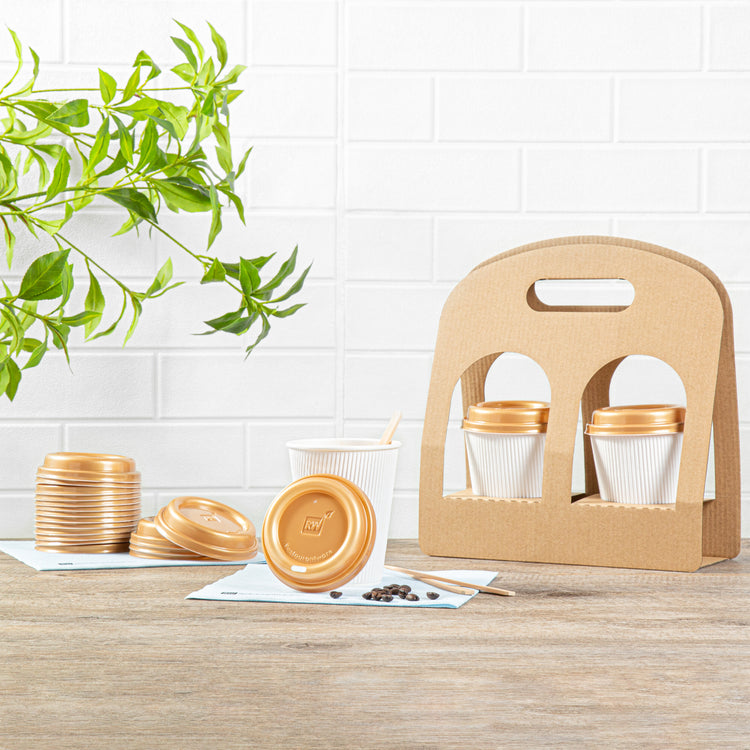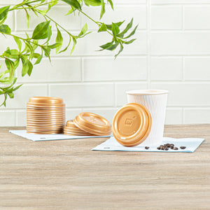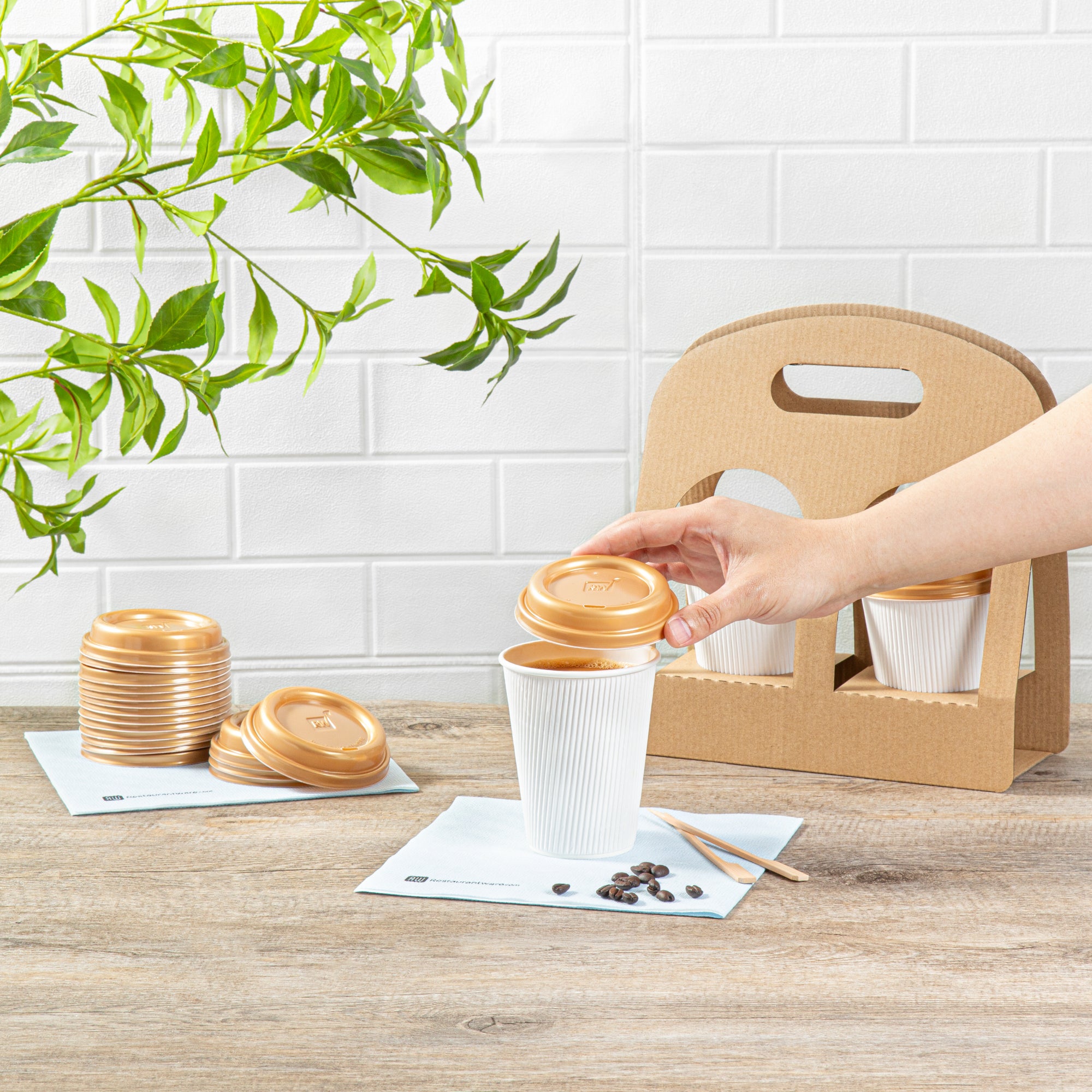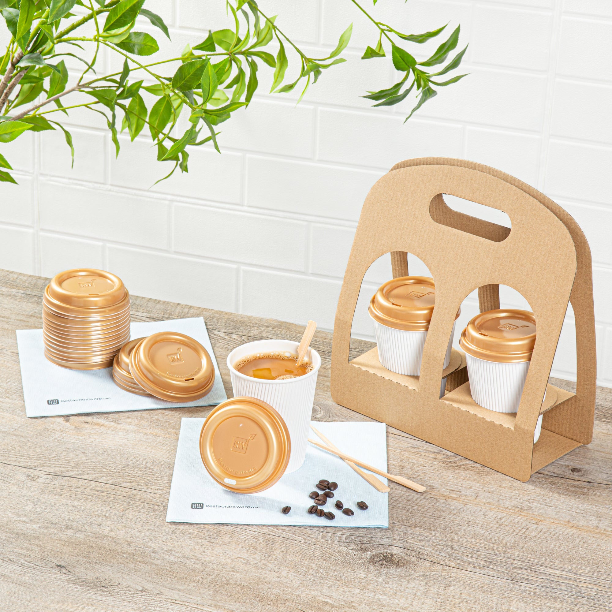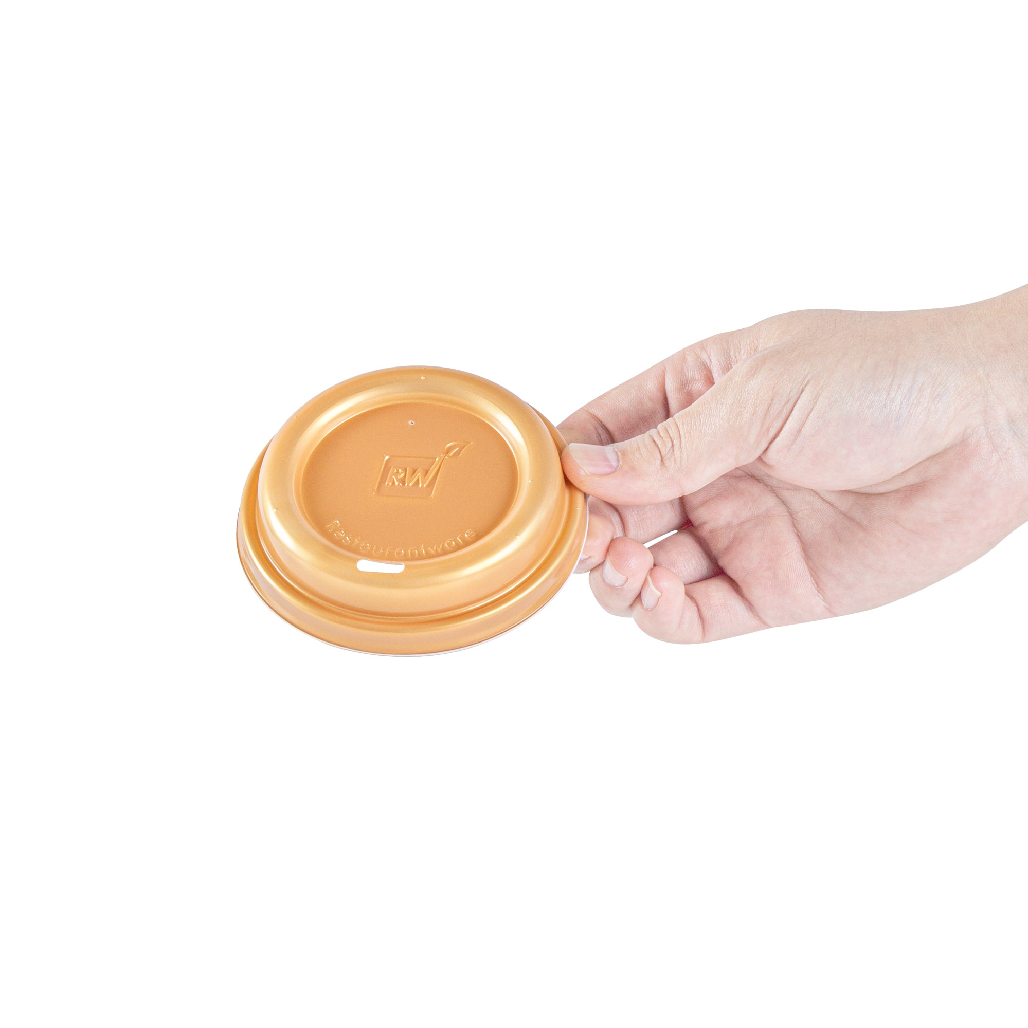 Eliminate spills and enhance customer satisfaction with Restpresso Leak-Resistant Coffee Lids. These disposable coffee lids feature a tight-fitting seal that prevents spills, making them ideal for on-the-go beverages. Measuring 3.62 inches in diameter, their elevated rim provides a comfortable sipping experience for customers enjoying hot drinks, positioning these lids as a must-have in your coffee service. Designed with a built-in ventilation hole, these lids ensure smooth beverage flow, which is crucial for maintaining a seamless coffee travel lid experience. Constructed from durable plastic, they maintain their shape and functionality, offering a reliable solution for hot beverages. The elegant gold finish adds sophistication, presenting an upscale look to complement any coffee cup. Streamline your inventory needs with versatile compatibility, fitting 8, 12, 16, and 20-ounce cups, and simplify your operations with these spill-proof coffee lids. Sold in a 500 count box.