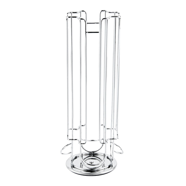 Streamline your coffee station with efficient pod storage. The Restpresso Revolving Access High Capacity Coffee Pod Organizer features a 360-degree rotatable base, providing quick access to all your coffee pods, enhancing workflow in bustling settings. This coffee pod organizer holds up to 24 Dolce Gusto pods, significantly reducing the frequency of refills and maintaining a steady supply during peak hours. With its compact dimensions of 5.51 inches by 5.51 inches by 12.99 inches, this dolce gusto pod holder is perfect for counters in busy kitchens, maximizing space without sacrificing capacity. Crafted from durable iron, its sleek silver finish resists corrosion, ensuring longevity and a polished appearance that enhances any beverage service area. Elevate your coffee service experience by organizing your capsules efficiently with this coffee capsule rack. Each order includes 1 Restpresso Revolving Access High Capacity Coffee Pod Organizer.