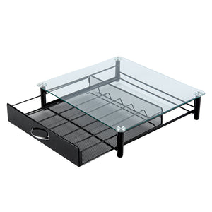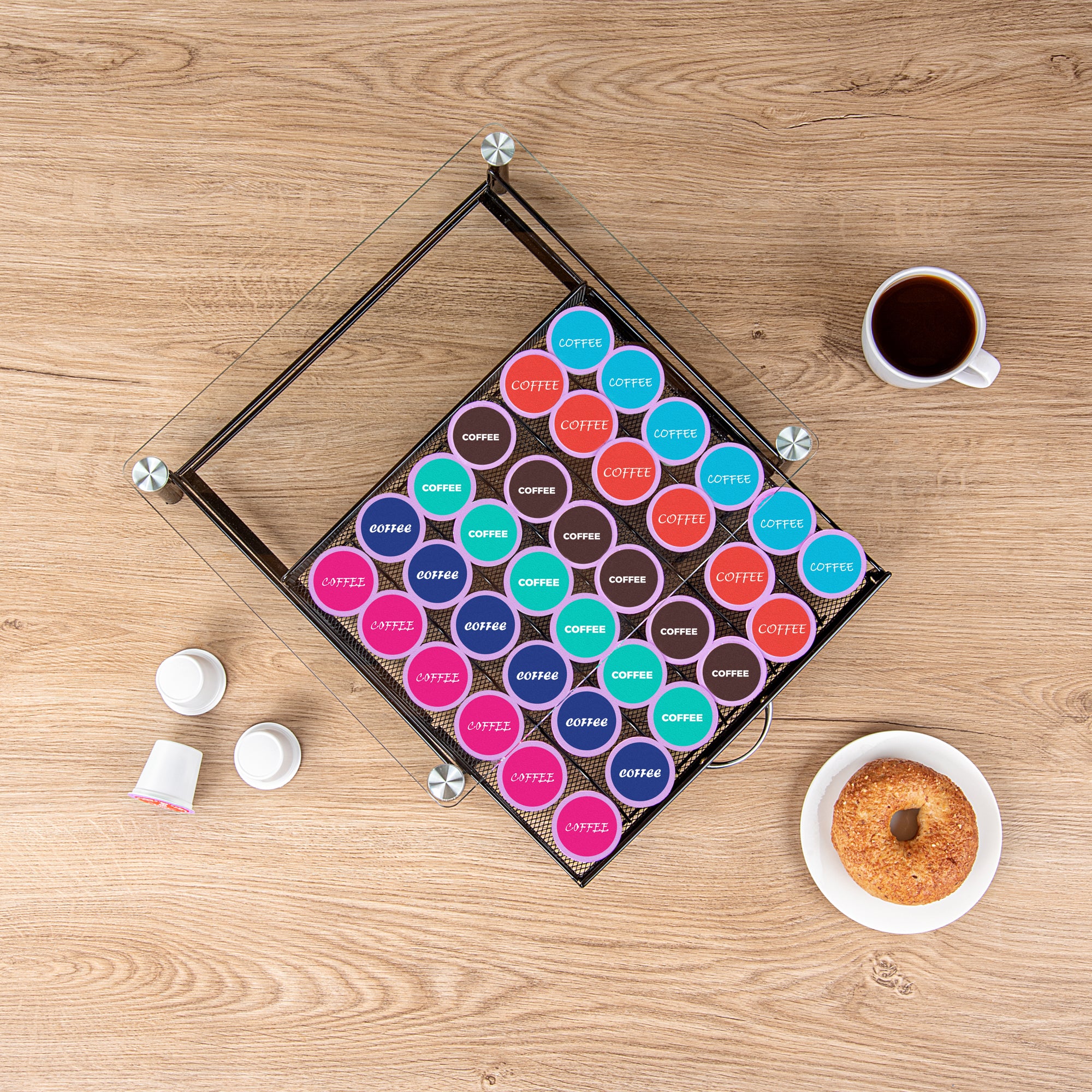 Enhance your coffee station efficiency with this versatile solution. The Restpresso Space-Saving Coffee Pod Holder boasts a tempered glass drawer that stores 36 K-Cups efficiently, allowing baristas to keep a variety of flavors organized and easily accessible. Designed as a coffee capsule organizer, its sleek black iron construction not only ensures durability in high-traffic settings but also complements any kitchen, office, or waiting room with a modern aesthetic. With compact dimensions of 15.16 inches in length, 13.58 inches in width, and 3.35 inches in height, this K-Cup holder drawer maximizes counter space, fitting neatly under most coffee machines and enhancing operational efficiency. The smooth sliding drawer mechanism provides effortless access to coffee pods. Invest in this coffee pod holder to keep your beverage area tidy and appealing. Each order includes 1 Restpresso Space-Saving High-Capacity Coffee Pod Holder.