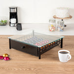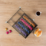 Maximize your coffee station's efficiency with ample storage. The Restpresso Space-Saving High-Capacity Nespresso Pod Holder is designed to hold up to 36 Nespresso Vertuo capsules, providing easy access and reducing the need for frequent refills. With its metal mesh tray, this coffee capsule drawer ensures effortless access to your coffee pods, enhancing your operational flow. The tempered glass top not only serves as a sturdy stand for your coffee machine but also allows quick capsule identification, streamlining your morning routine. Its sleek black iron construction complements upscale dining or meeting areas, adding a touch of elegance and modernity. Measuring 15.55 inches in length, 14.09 inches in width, and 4.21 inches in height, this Vertuo pod organizer fits seamlessly under most coffee machines, saving valuable counter space. Elevate your coffee service and maintain a tidy, organized setup. Each order includes 1 Restpresso Space-Saving High-Capacity Nespresso Pod Holder.