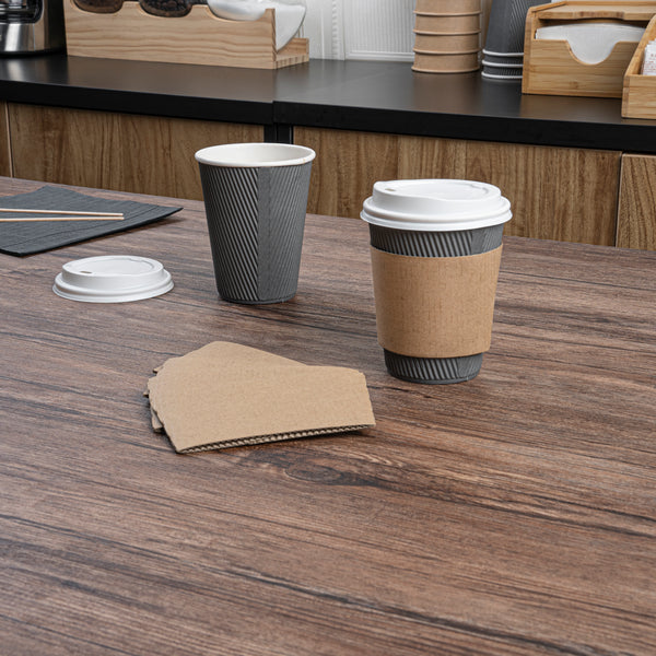 With a versatile build, these hot cup sleeves fit 12-, 16-, and 20-ounce cups. Pair these hot beverage sleeves with our collection of coordinating coffee cups.
