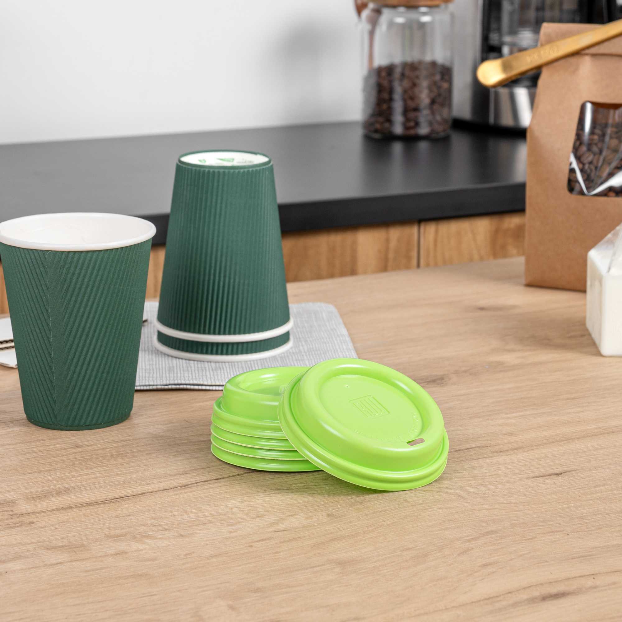 LIME GREEN PLASTIC COFFEE CUP LID - FITS 8, 12, 16 AND 20 OZ