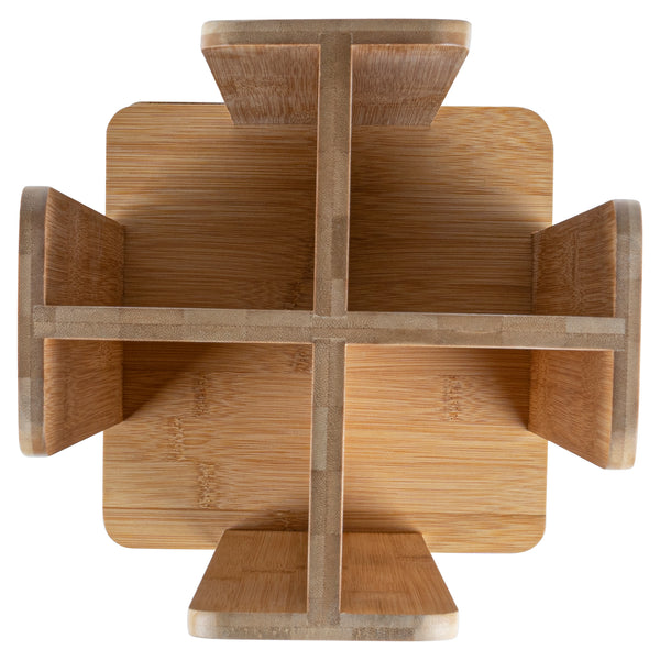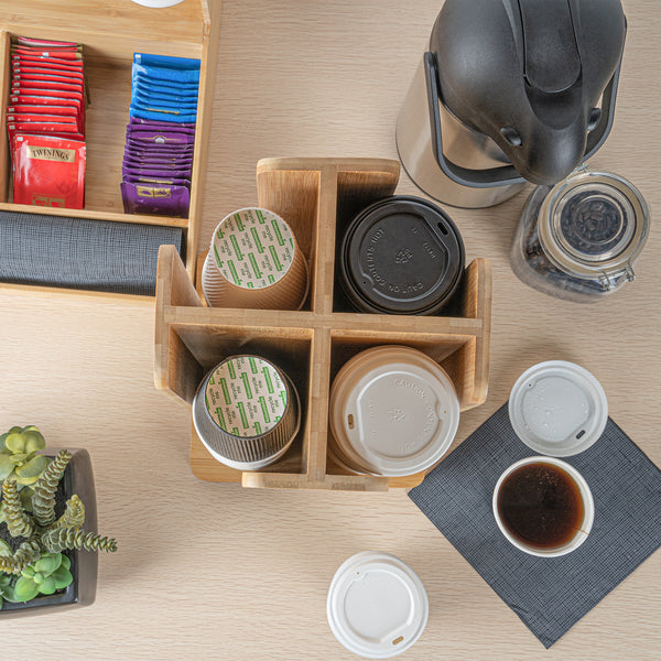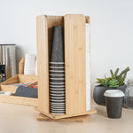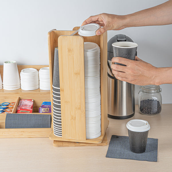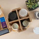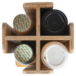 NATURAL BAMBOO COFFEE CUP / LID ORGANIZER - 4 SECTION, REVOLVING
