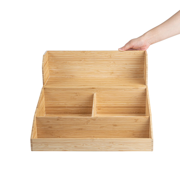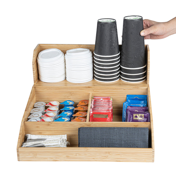 NATURAL BAMBOO CONDIMENT / COFFEE CUP / LID ORGANIZER