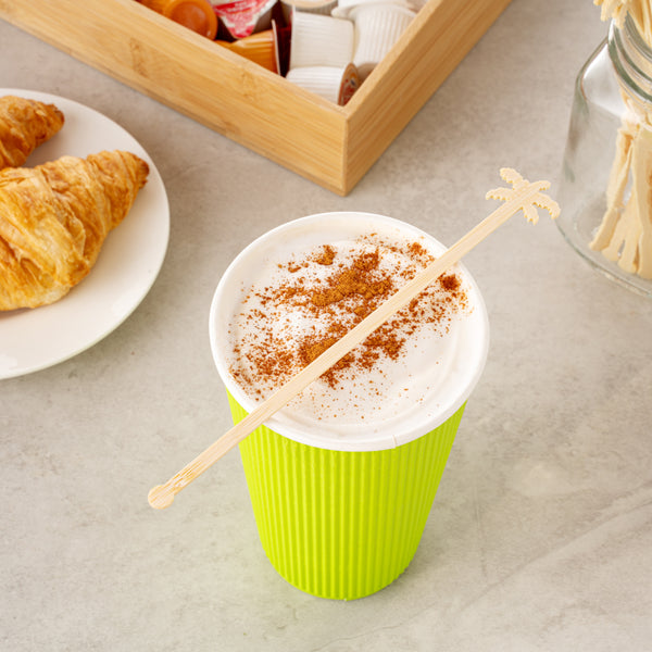 Enhance service with our Restpresso Bamboo Palm Tree Cocktail Stirrers. These sustainable bamboo stirrers, measuring 6.89 inches in length, offer a biodegradable option for mixing drinks, promoting sustainable responsibility in your establishment. The palm tree design not only adds a tropical flair to your beverages but also provides a comfortable and stylish way to stir, making them ideal for tiki bars and themed events. With a smooth finish, these drink stirrers guarantee a splinter-free experience, enhancing safety and comfort for your patrons. Perfect for both cold and hot beverages, they suit a wide range of foodservice settings, from cafés to office break rooms, ensuring versatility and convenience. Choose these biodegradable stirrers to simplify cleanup and reduce waste, aligning with your sustainability goals. Each order includes 1000 Restpresso Biodegradable 6.89" Bamboo Stirrers.