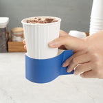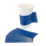 Enhance beverage service with a secure, stylish grip. The Restpresso Secure Grip Coffee Cup Sleeve, Blue Paper, 11.25 inches by 2.5 inches by 2.5 inches – offers an integrated handle design that ensures a firm hold, minimizing spills and enhancing customer comfort, making it an ideal coffee cup sleeve for bustling cafes. This disposable cup sleeve is crafted from insulating paper material, effectively protecting hands from hot beverages and creating a safe drinking experience. Its universal compatibility fits 12, 16, and 20-ounce cups, streamlining operations for businesses serving various drink sizes. With a smooth exterior it allows baristas to easily write customer names, preventing mix-ups during peak hours. Elevate your service with this hot beverage sleeve, offering a blend of comfort and elegance. Each order includes 50 Restpresso Secure Grip Coffee Cup Sleeves.