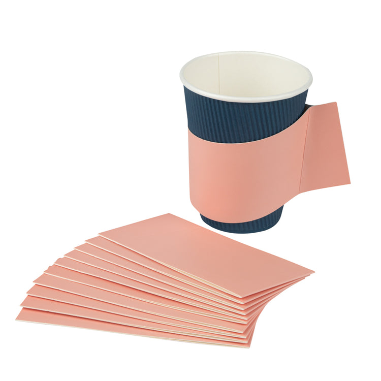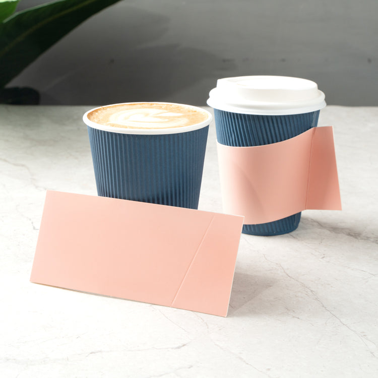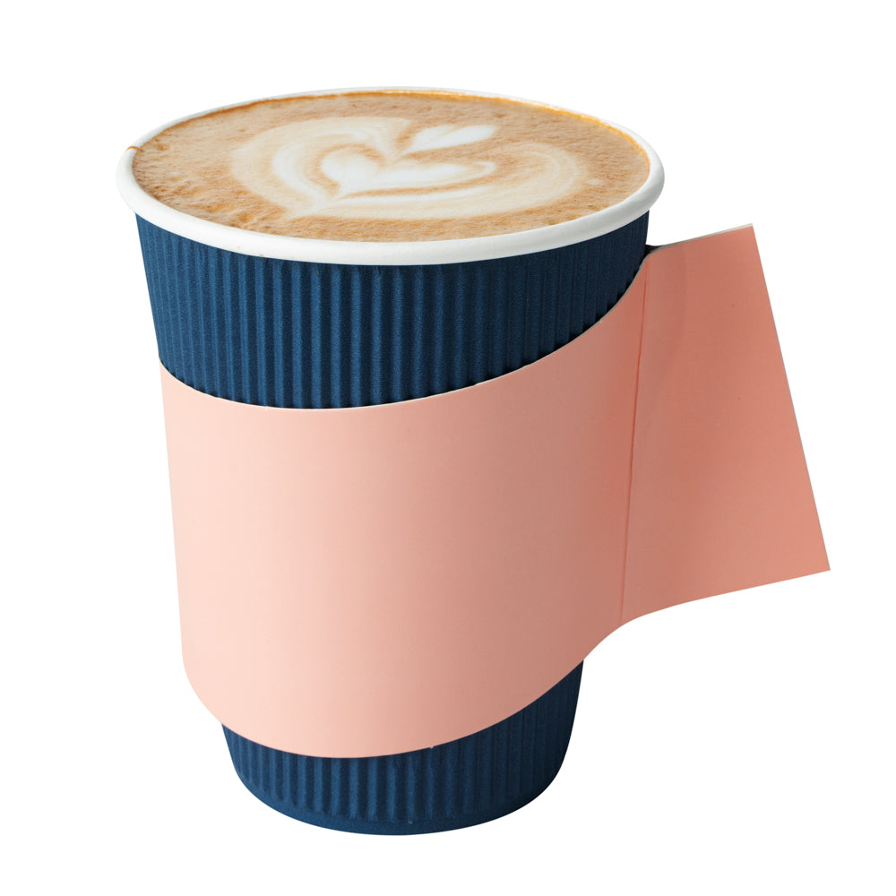 Enhance customer satisfaction with our versatile paper cup holder. The Restpresso Integrated Handle Multi-Size Compatible Paper Cup Holder offers a secure grip with its innovative attached handle, reducing the risk of spills and ensuring comfort with every sip. This coffee cup sleeve easily fits 12-20 ounce cups, optimizing storage and inventory for busy coffee shops and event caterers. Crafted from durable pink paper, it effectively insulates hot beverages, protecting hands from heat. The smooth exterior allows for seamless customization, enhancing brand visibility and providing a personal touch by writing customers' names directly on the sleeve. Measuring 11.25 inches in length and 2.5 inches in both width and height, this insulated cup holder is both practical and stylish. Ensure your business supports sustainability with this product. Each order includes 1000 Restpresso Integrated Handle Multi-Size Compatible Paper Cup Holders.