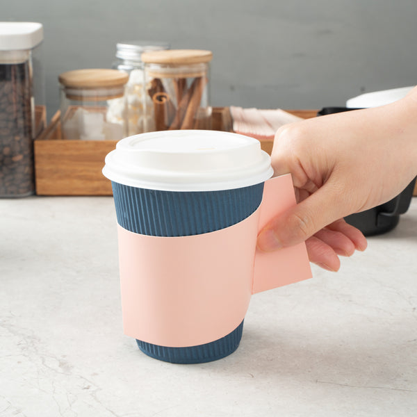 Enhance customer satisfaction with our versatile paper cup holder. The Restpresso Integrated Handle Multi-Size Compatible Paper Cup Holder offers a secure grip with its innovative attached handle, reducing the risk of spills and ensuring comfort with every sip. This coffee cup sleeve easily fits 12-20 ounce cups, optimizing storage and inventory for busy coffee shops and event caterers. Crafted from durable pink paper, it effectively insulates hot beverages, protecting hands from heat. The smooth exterior allows for seamless customization, enhancing brand visibility and providing a personal touch by writing customers' names directly on the sleeve. Measuring 11.25 inches in length and 2.5 inches in both width and height, this insulated cup holder is both practical and stylish. Ensure your business supports sustainability with this product. Each order includes 1000 Restpresso Integrated Handle Multi-Size Compatible Paper Cup Holders.