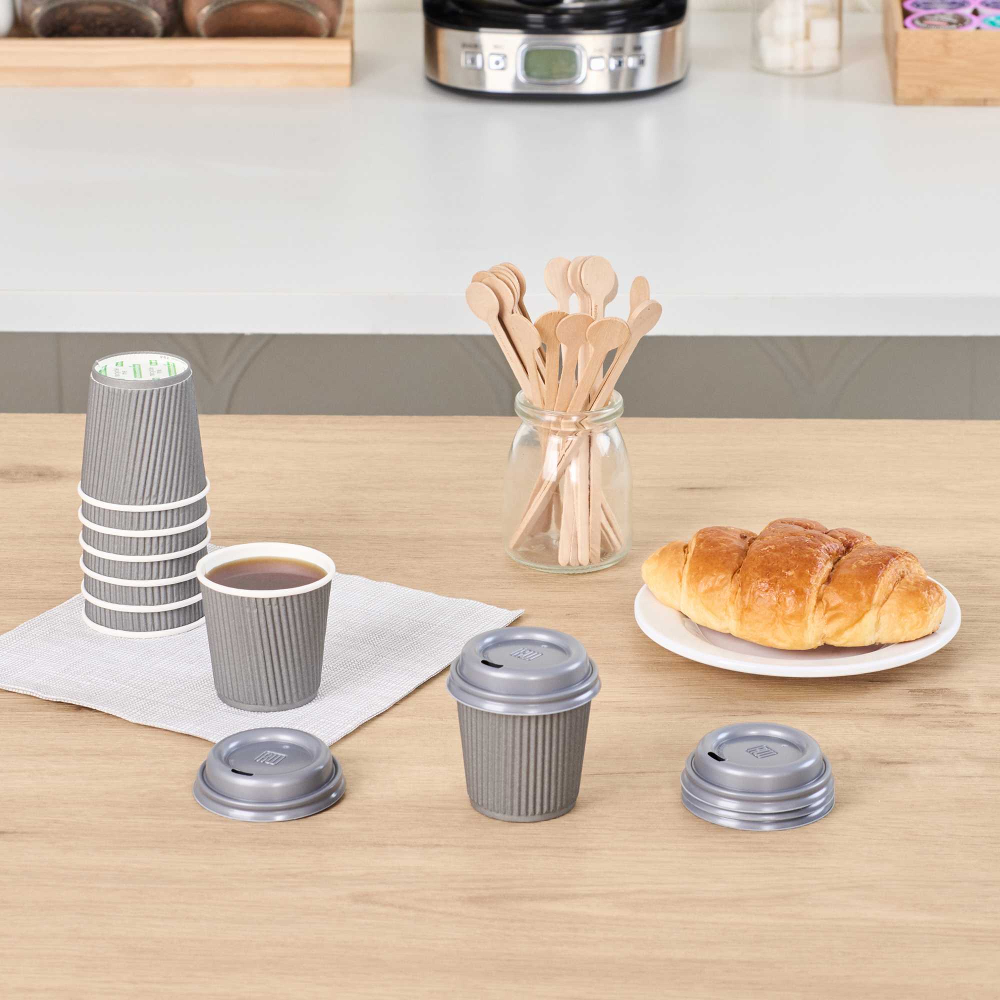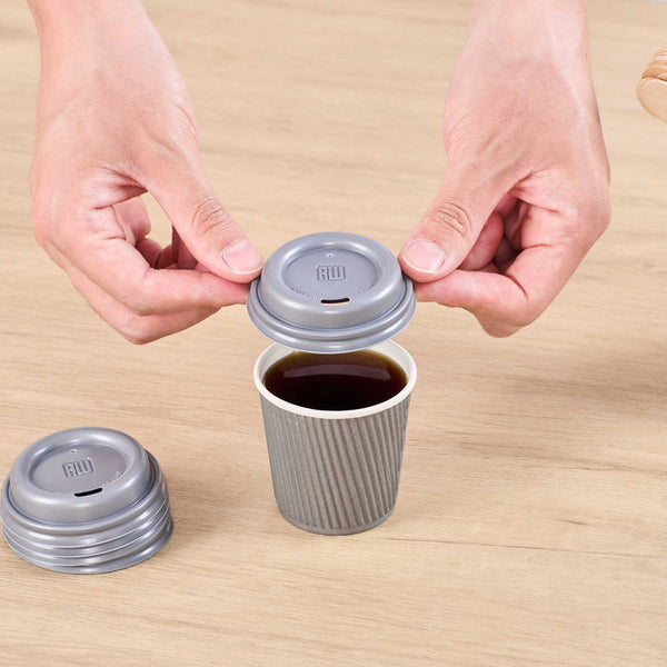 Premium plastic lids snugly fit on coffee cups without splitting and won’t break while in use. No more coffee stains or spills on your clothes!