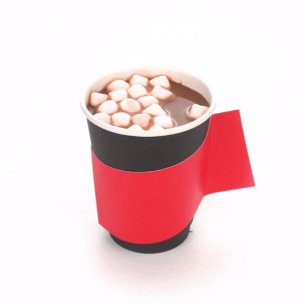 RED PAPER COFFEE CUP SLEEVE - WITH HANDLE, FITS 12 / 16 / 20 OZ CUPS