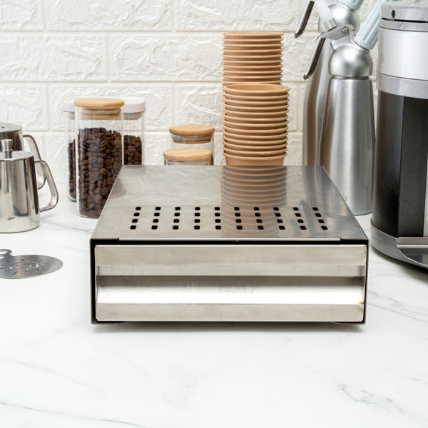 Constructed from durable stainless steel, this espresso knock box is designed to support the weight of your heavy espresso coffee grinders and coffee machines. This stainless steel knock box drawer is equipped to withstand everyday use and maintain its beautiful finish.