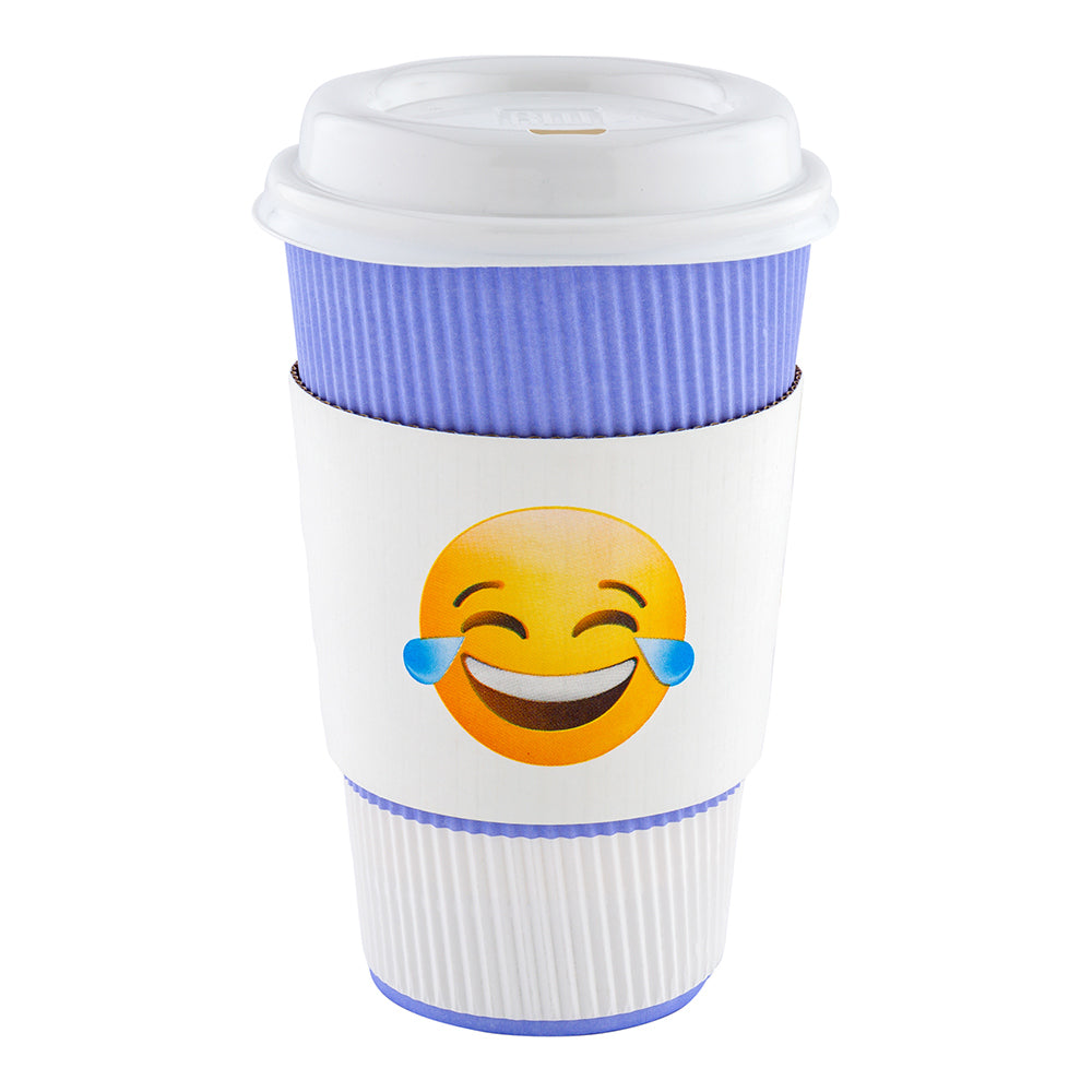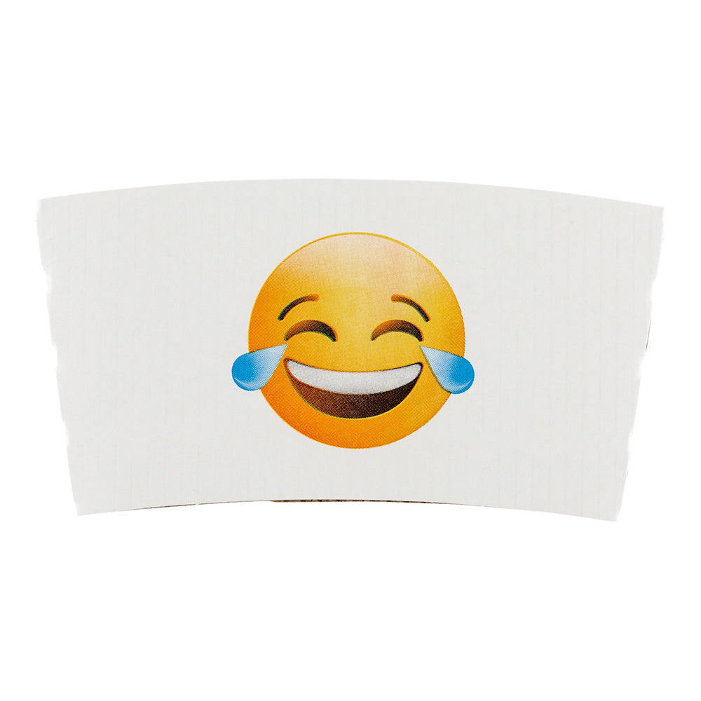 WHITE PAPER CRYING LAUGHING EMOJI COFFEE CUP SLEEVE