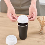 Enhance beverage service efficiency with Restpresso White Plastic 2-in-1 Straw or Sippy Coffee Cup Lid. This innovative coffee cup lid features a versatile 2-in-1 design that offers both straw and spout options, allowing customers to choose their preferred drinking method and minimizing spills. Made from durable plastic, it provides a secure fit on 8, 12, 16, and 20-ounce cups, ensuring compatibility and reducing the need for multiple lid types. The detachable double plug effectively seals openings, offering spill-resistant transport, which is especially beneficial for coffee shops and cafes focusing on takeout services. Designed to accommodate both hot and cold beverages, this straw lid supports diverse menu offerings and withstands varying temperatures. Its white color gives a clean and professional look, enhancing any beverage presentation. Upgrade your beverage service with this practical solution that measures 3.54 inches by 3.54 inches by 1.18 inches. Sold in a 25 count box.