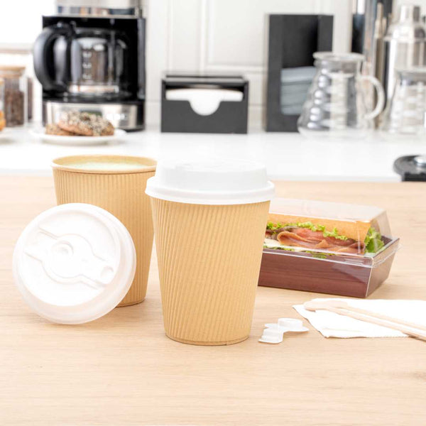 WHITE PLASTIC 2-IN-1 COFFEE CUP LID - WITH PLUG, FITS 8, 12, 16, 20 OZ