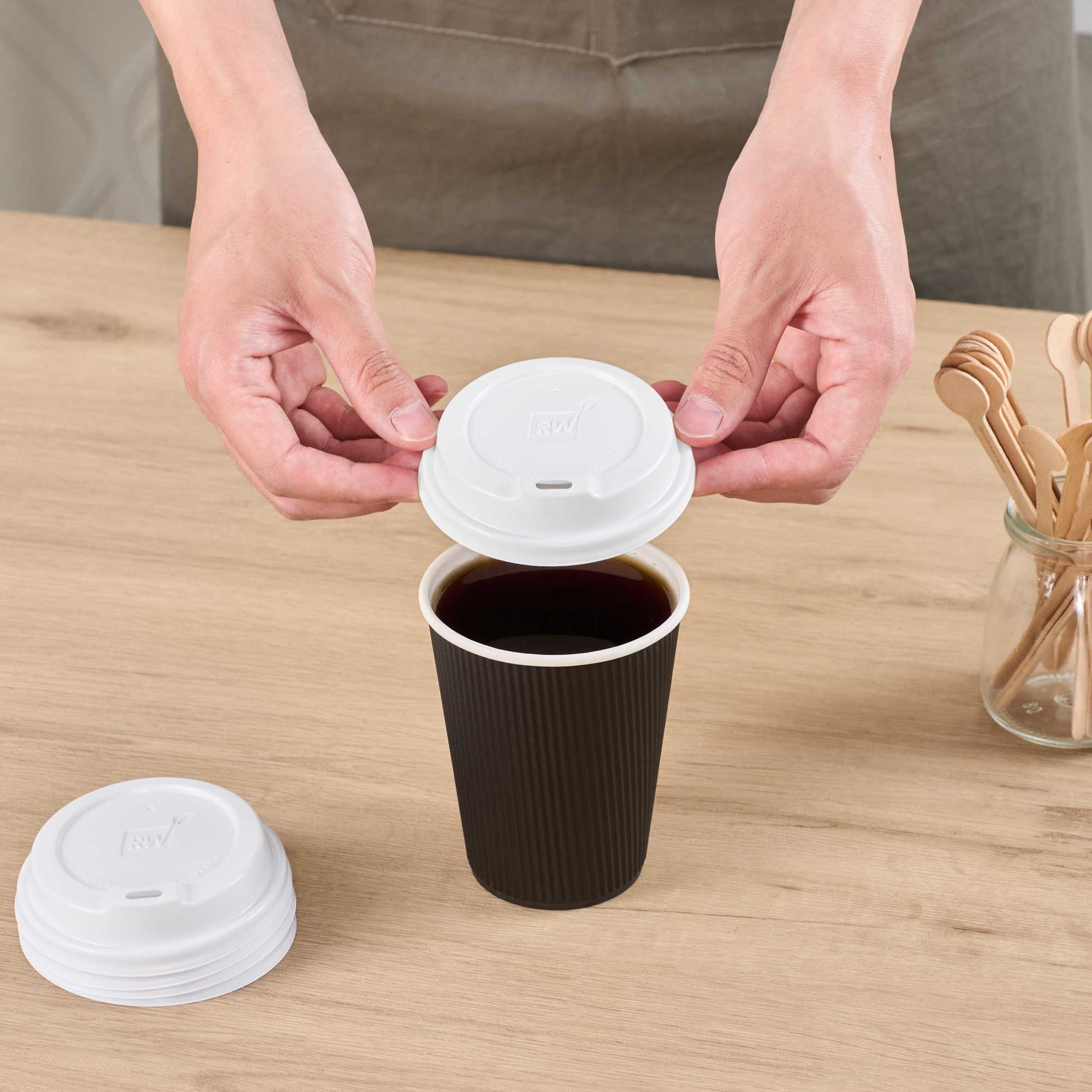 Premium plastic lids snugly fit on coffee cups without splitting and won’t break while in use. No more coffee stains or spills on your clothes!
