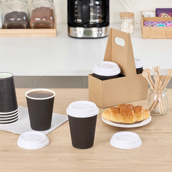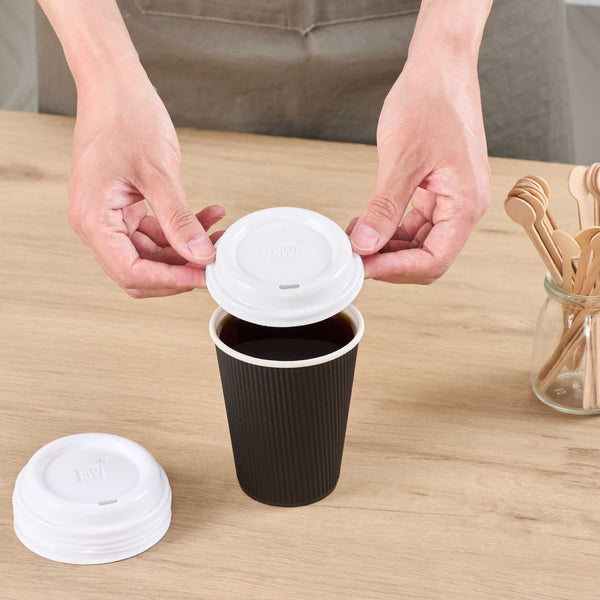 Premium plastic lids snugly fit on coffee cups without splitting and won’t break while in use. No more coffee stains or spills on your clothes!