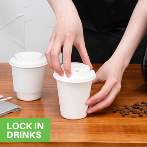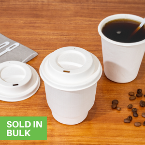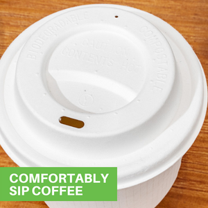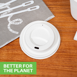 Made from processed sugarcane pulp, known as bagasse, this coffee cup lid breaks down in nature after it's been disposed of. A great alternative to other disposable lids!