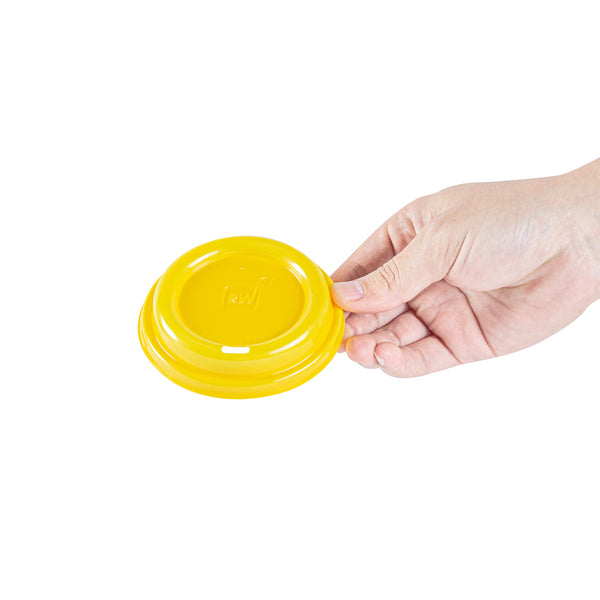YELLOW PLASTIC COFFEE CUP LID - FITS 8, 12, 16 AND 20 OZ