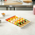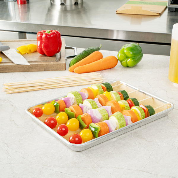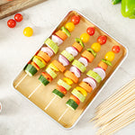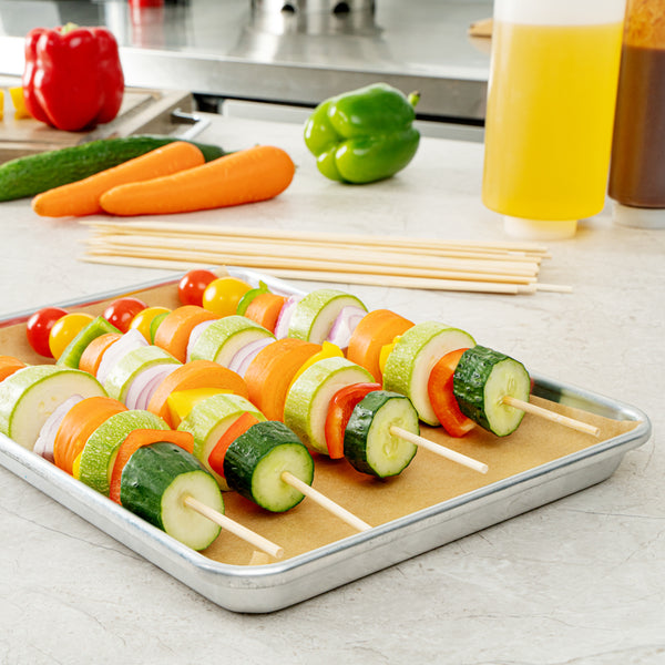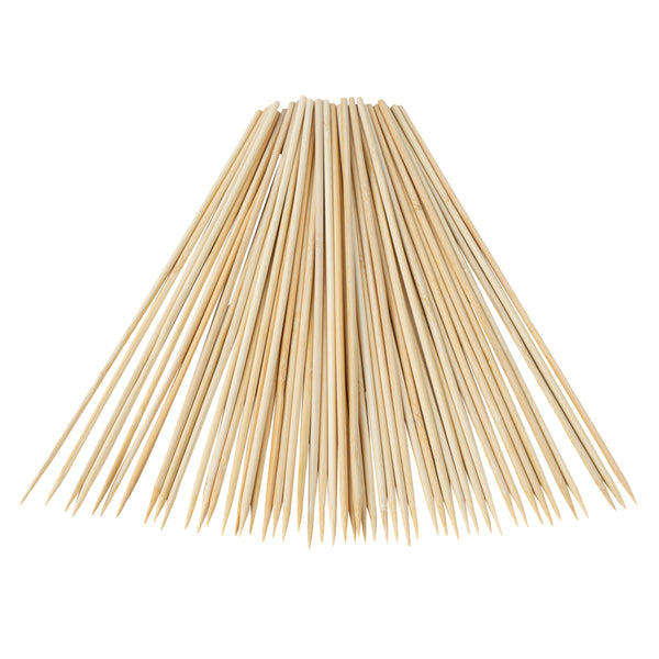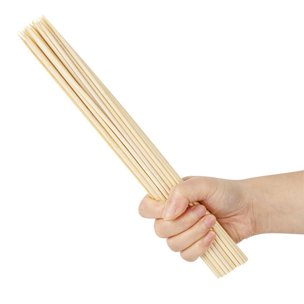Add a rustic touch to your grilling or BBQ event using our Robata Sturdy Natural Bamboo Grilling Skewers. Made from heavy-duty bamboo, these 12-inch skewers won't break when holding your vegetables. Plus, these skewers are easily freezable to store leftover meat or fruits without removing them. These skewers for grilling are recommended to soak in water for 30 minutes to avoid burning when roasting or baking in the oven. For easy cleanup after events, these BBQ sticks are disposable. These skewers for roasting measure 12 inches in length and are perfect for holding a variety of foods. Sold in a 1,000 count box.