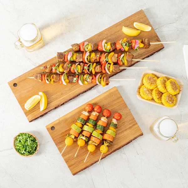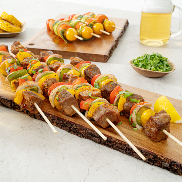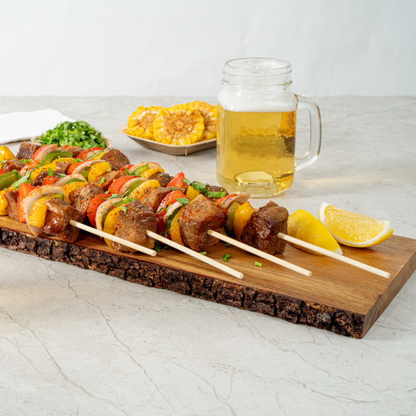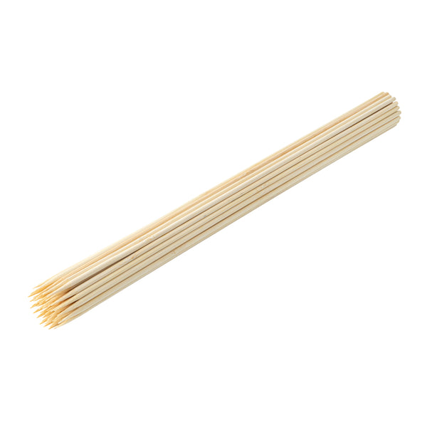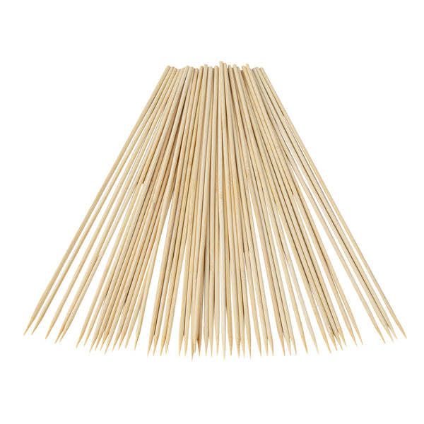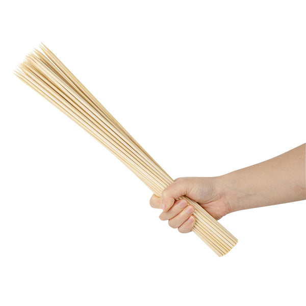 Roast and grill various meats and vegetables using our Robata Sturdy Natural Bamboo Grilling Skewers. Constructed from heavy-duty bamboo, these 16-inch skewers are a great eco-friendly alternative from traditional plastic skewers. Plus, these bamboo skewers won't burn when grilling or baking ingredients if soaked in water for at least 30 minutes before use. To avoid hectic cleaning after events, these single-use bbq sticks are easily disposable. These skewers for grilling withstand freezer temperatures to conveniently store leftover or premade skewers. These bamboo roasting sticks measure 16 inches in length by 1.57 inches in width, ideal to hold fresh fruits or grilled meat. Sold in a 100 count box.