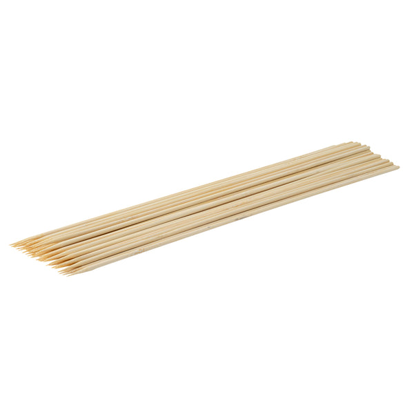 Roast and grill various meats and vegetables using our Robata Sturdy Natural Bamboo Grilling Skewers. Constructed from heavy-duty bamboo, these 16-inch skewers are a great eco-friendly alternative to traditional plastic skewers. Plus, these bamboo skewers won't burn when grilling or baking ingredients if soaked in water for at least 30 minutes before use. To avoid hectic cleaning after events, these single-use BBQ sticks are easily disposable. These skewers for grilling withstand freezer temperatures to conveniently store leftover or premade skewers. These bamboo roasting sticks measure 16 inches in length by 1.57 inches in width, ideal to hold fresh fruits or grilled meat. Sold in a 1,000 count box.